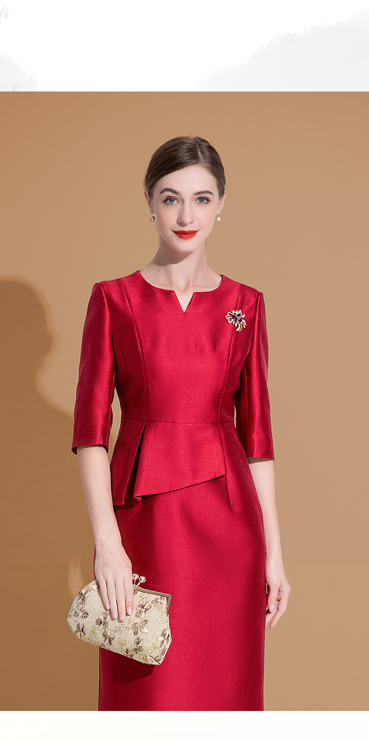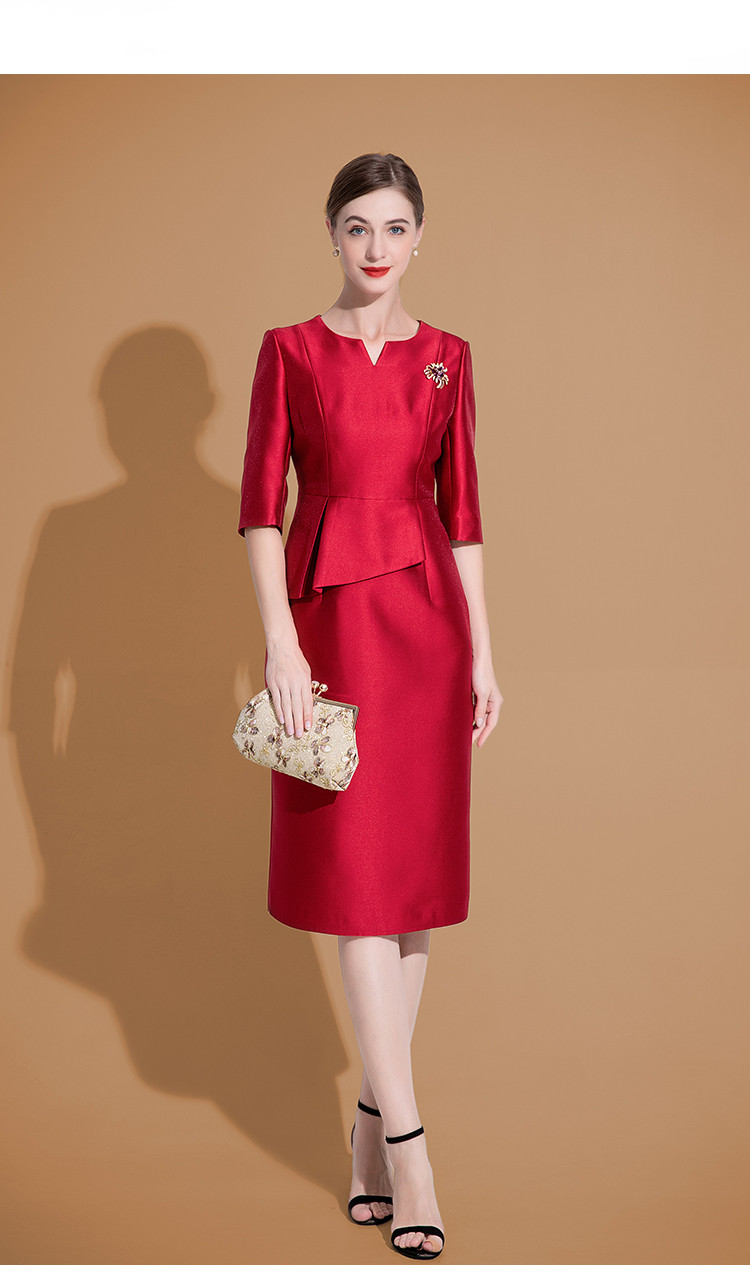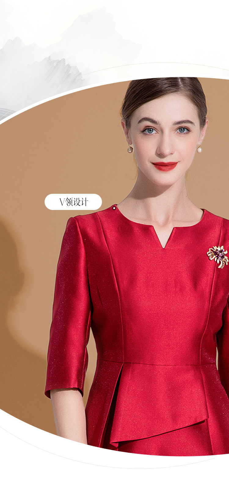 商品名称:红色连衣裙女春季气质优雅高贵包臀裙收腰轻奢礼服裙 667231