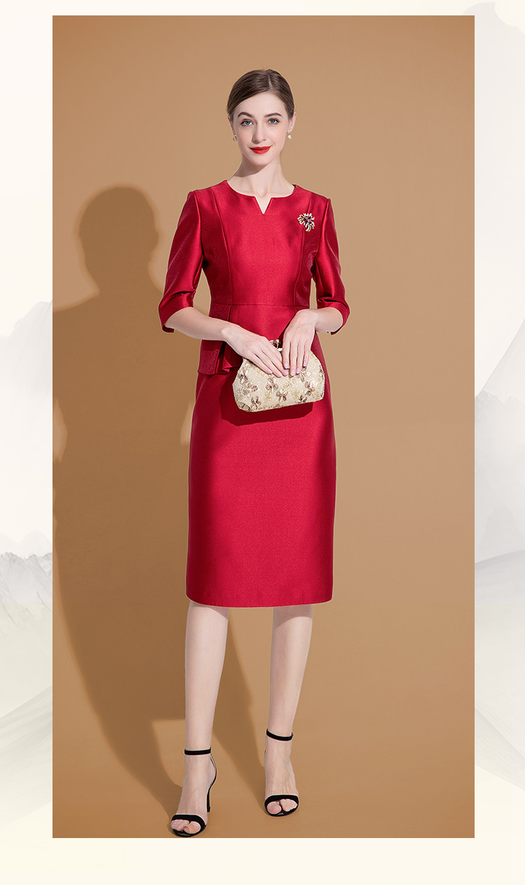 红色连衣裙女春季气质优雅高贵包臀裙收腰轻奢礼服裙 667231