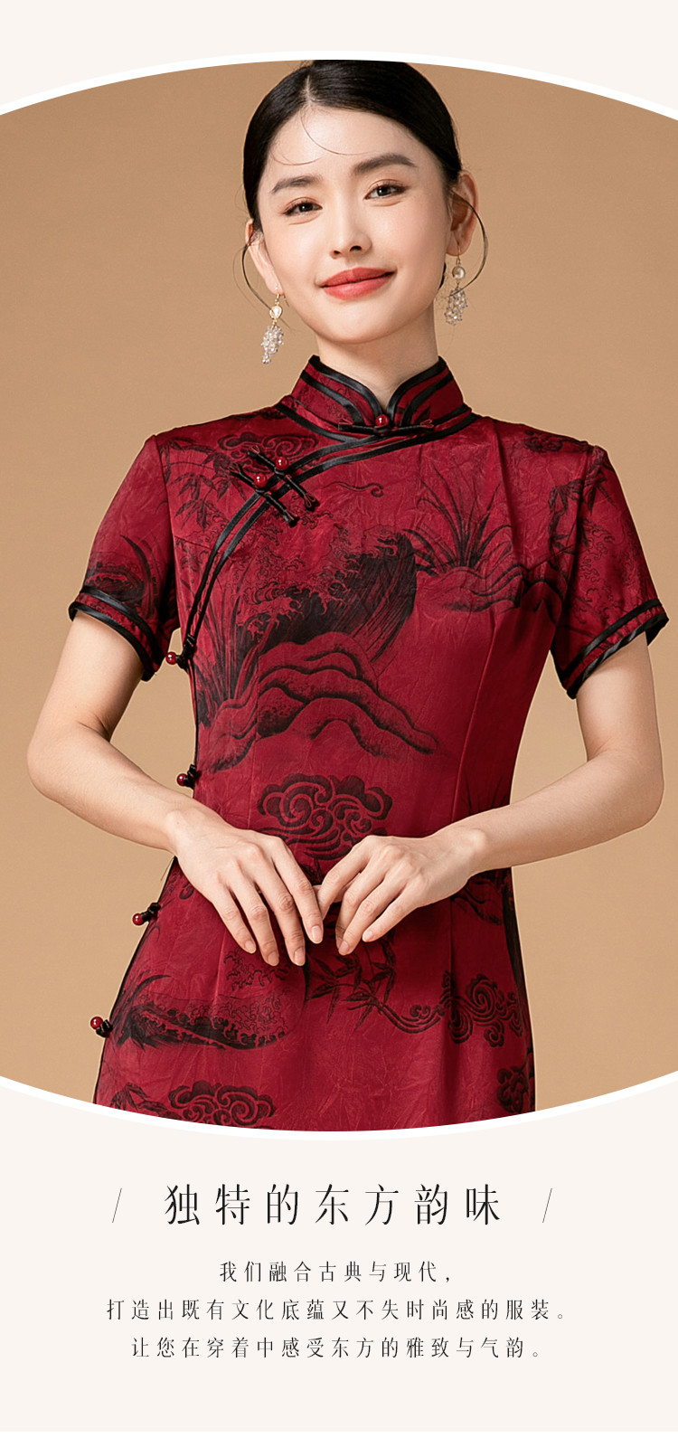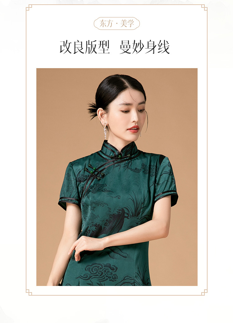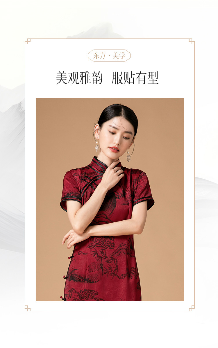 商品名称:新中式改良旗袍春秋复古高级感立领提花国风连衣裙 402143