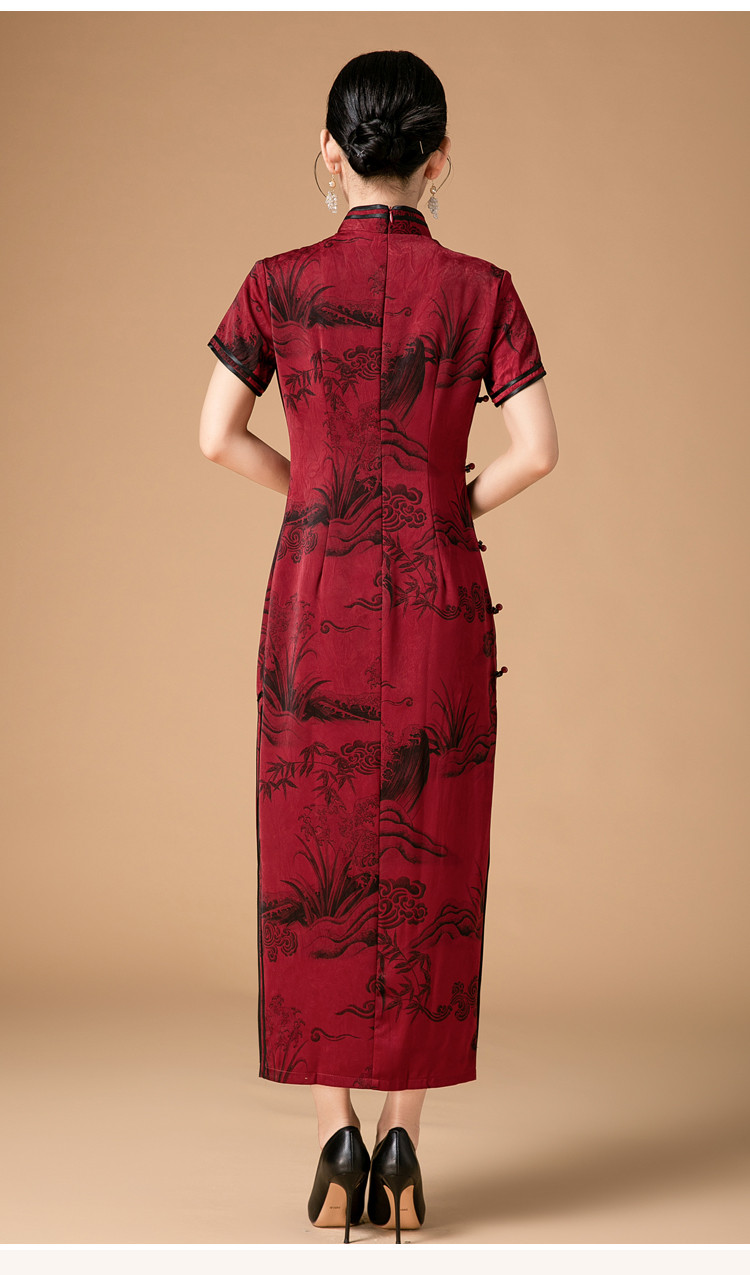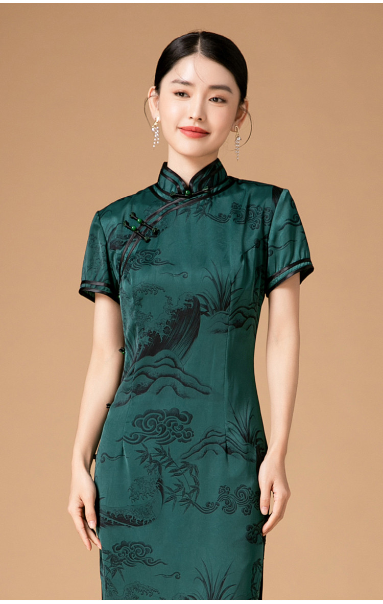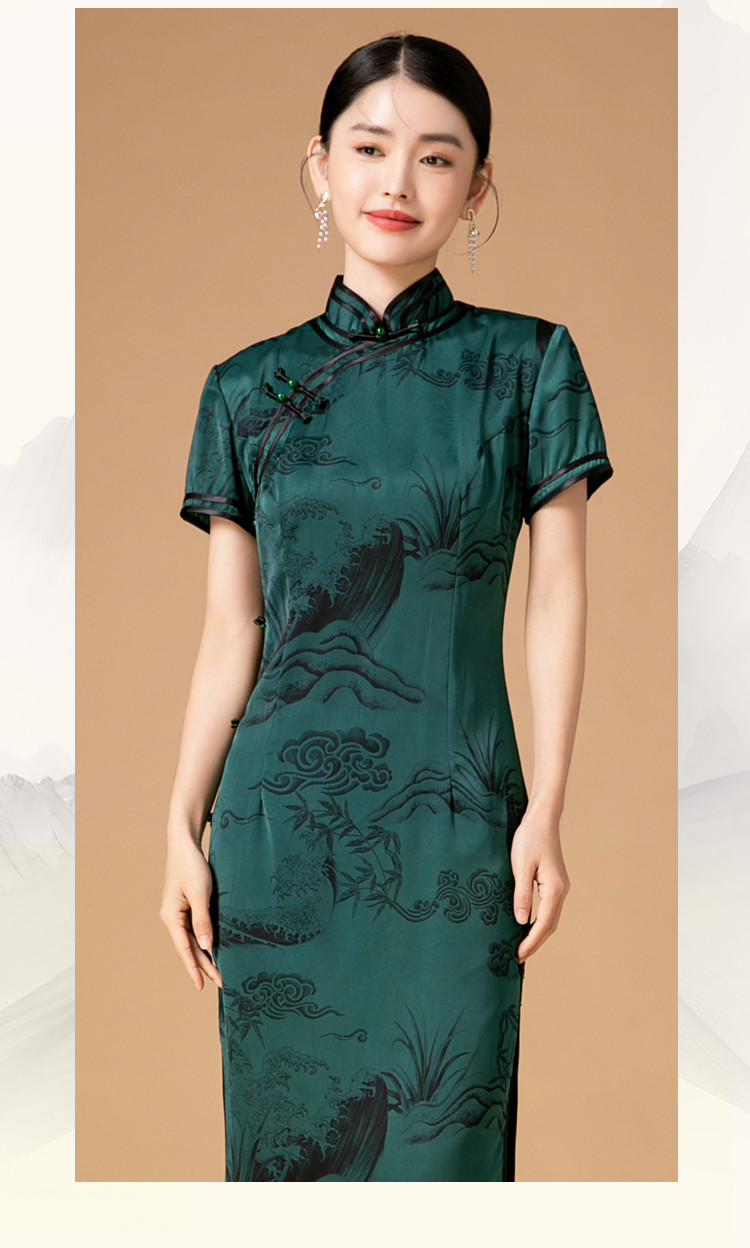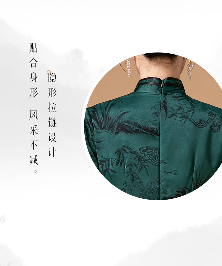 新中式改良旗袍春秋复古高级感立领提花国风连衣裙 402143