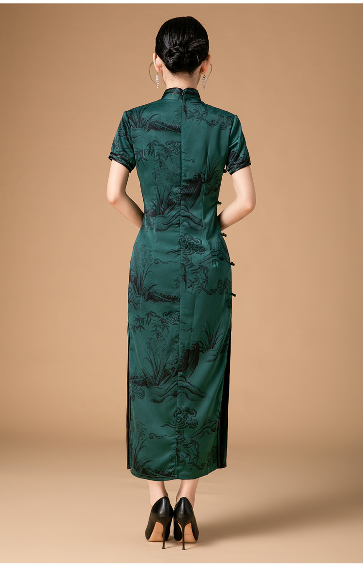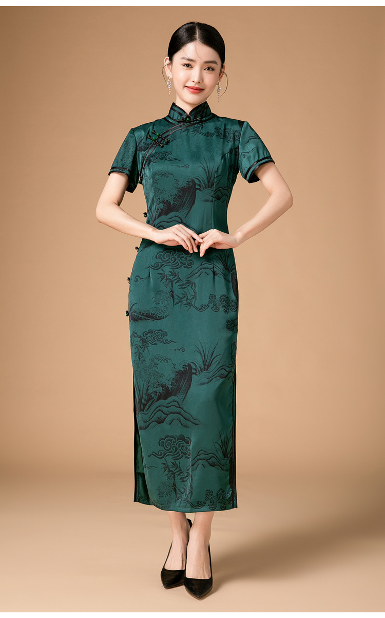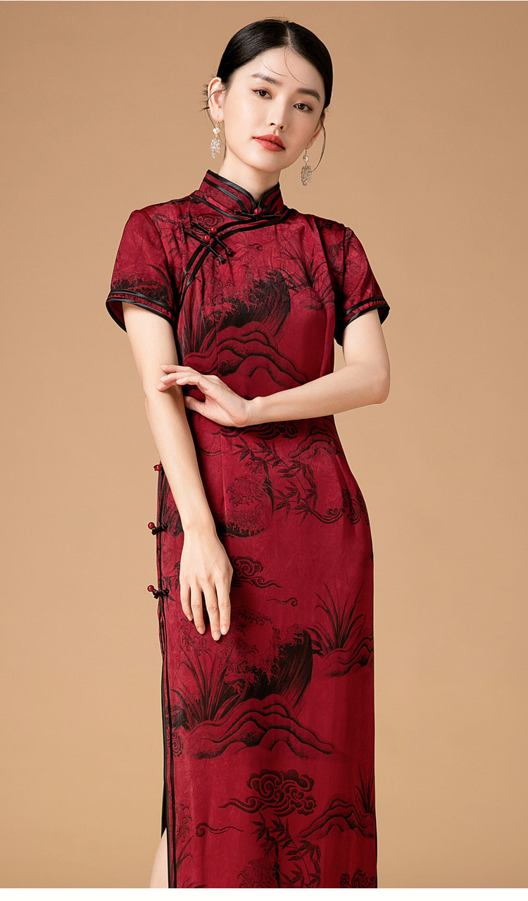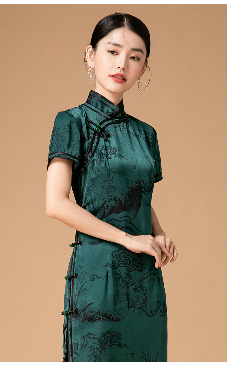 新中式改良旗袍春秋复古高级感立领提花国风连衣裙 402143