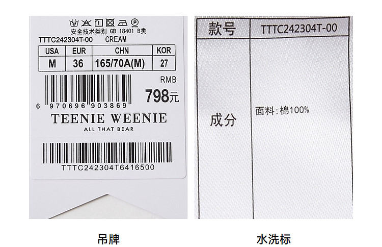 商品名称:休闲裤小熊女装春夏款高腰直筒牛仔裤长裤白色裤子 066817