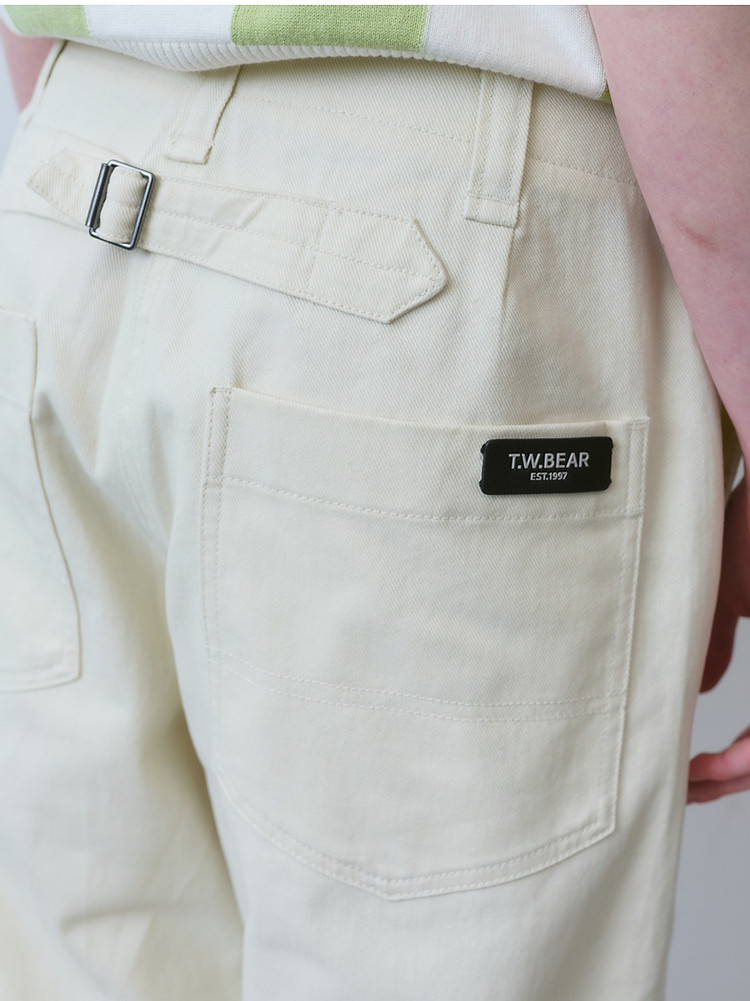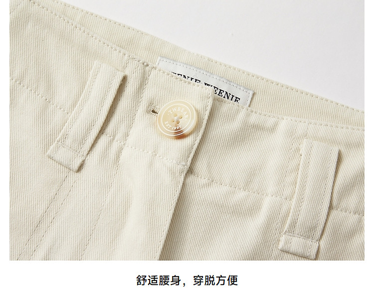 休闲裤小熊女装春夏款高腰直筒牛仔裤长裤白色裤子 066817