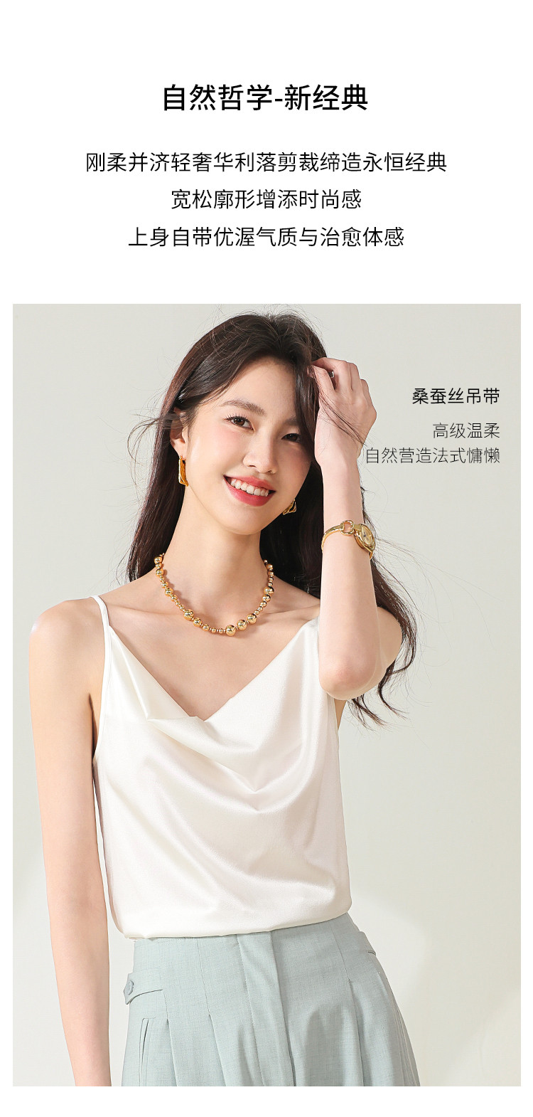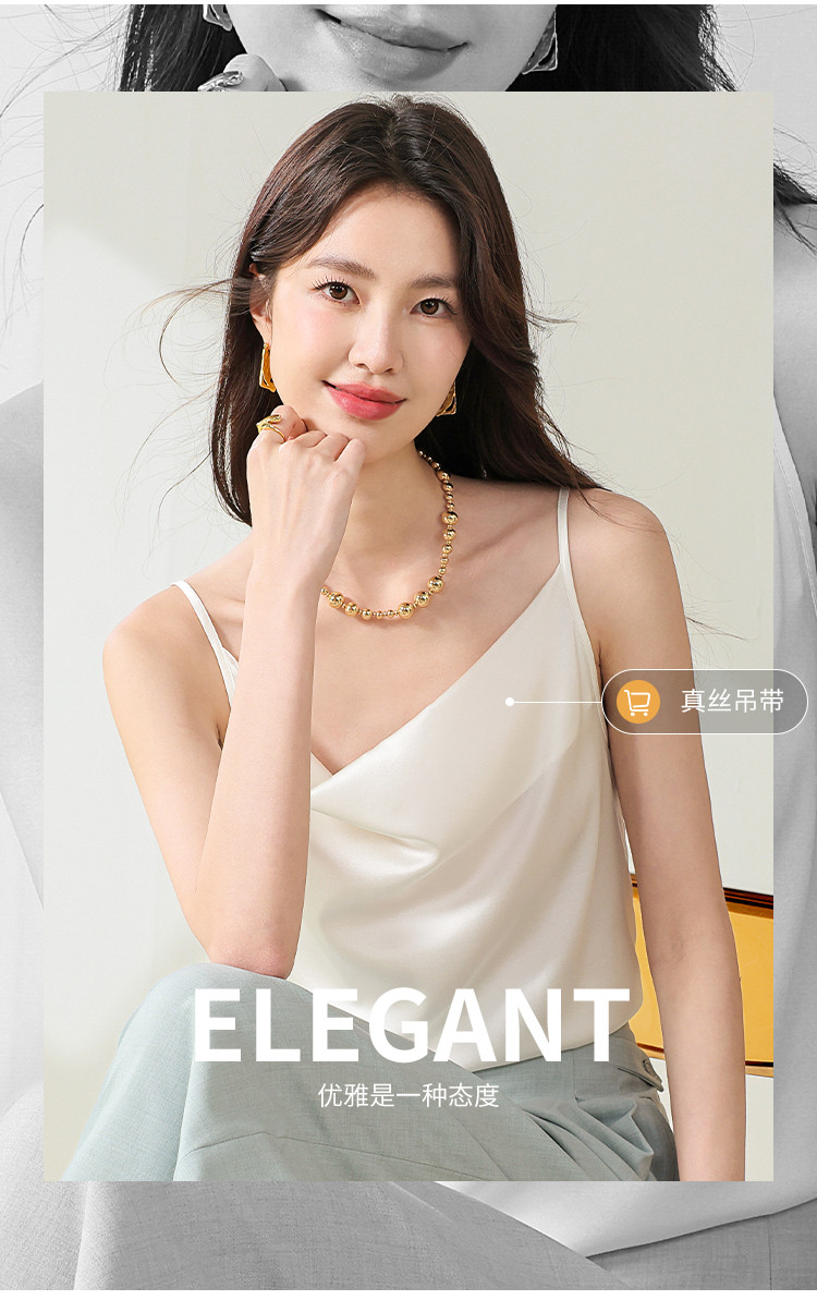 【桑蚕丝】纯色V领桑蚕丝背心吊带无袖内搭衬衣 622227
