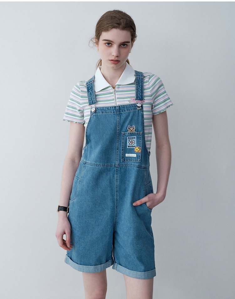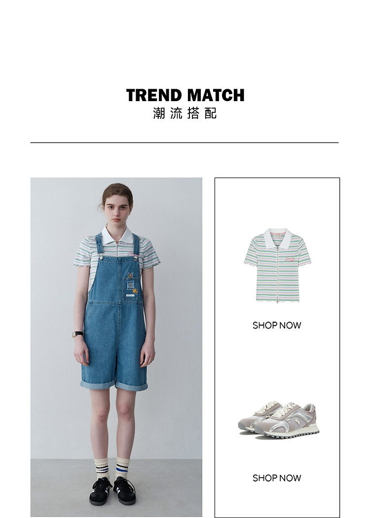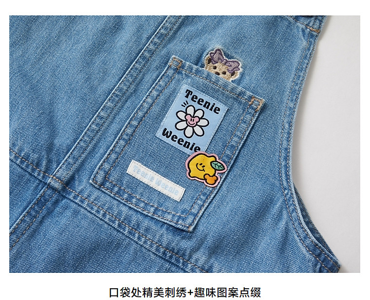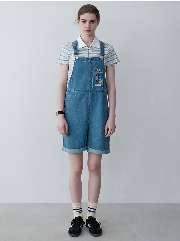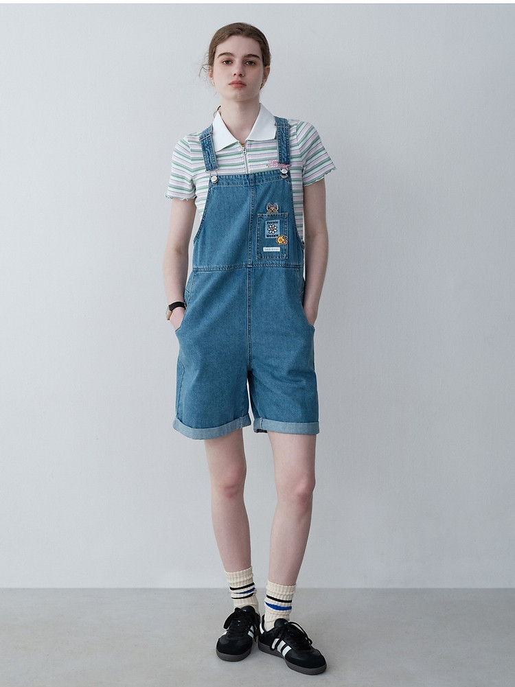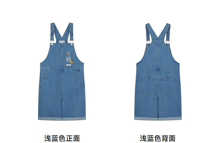 商品名称:小熊女装春秋款元气少女感宽松牛仔背带裤短裤 768129