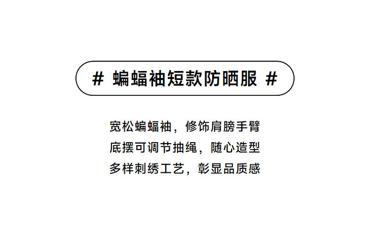 商品名称:【UPF50+防晒服】小熊女装蝙蝠袖短外套上装 208001