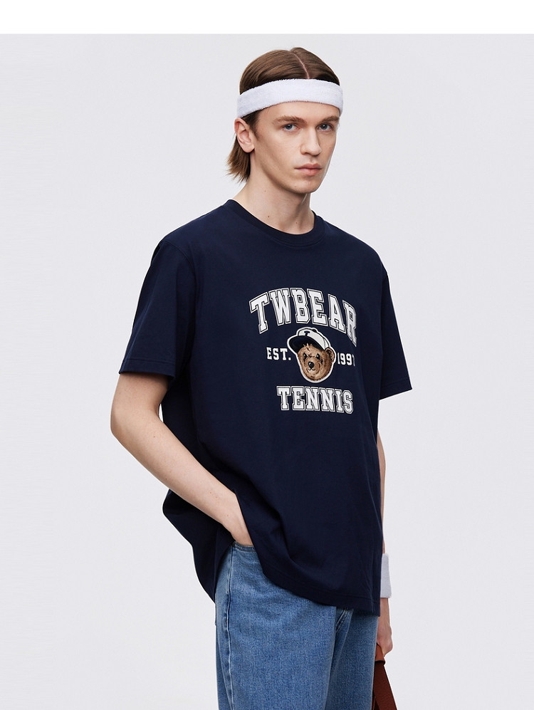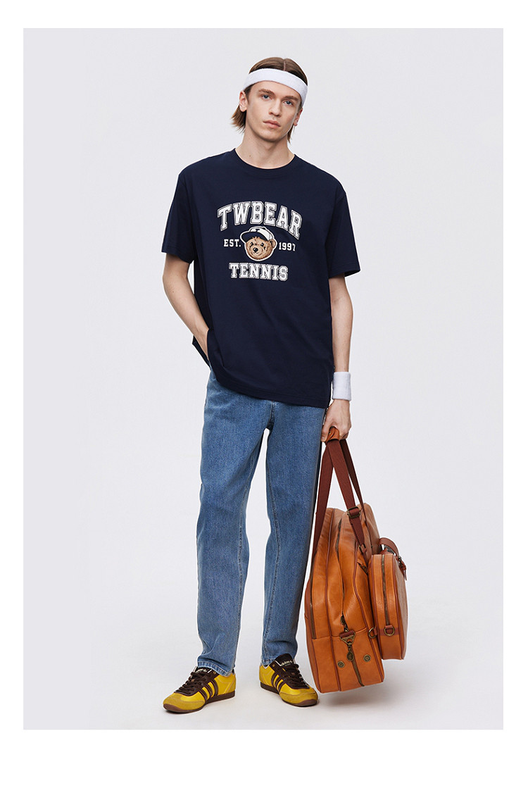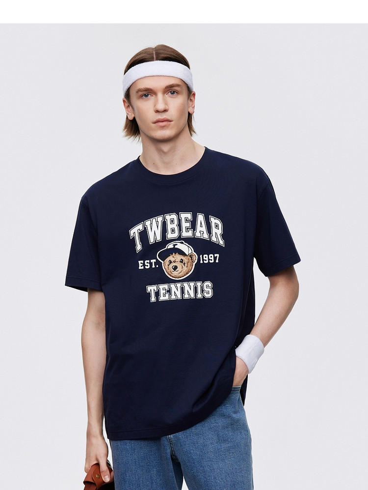 小熊男装简约舒适时尚潮流短袖休闲运动圆领T恤男夏季印花t恤男 260673
