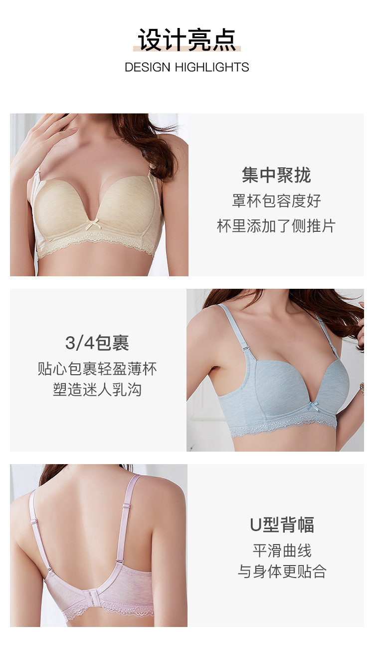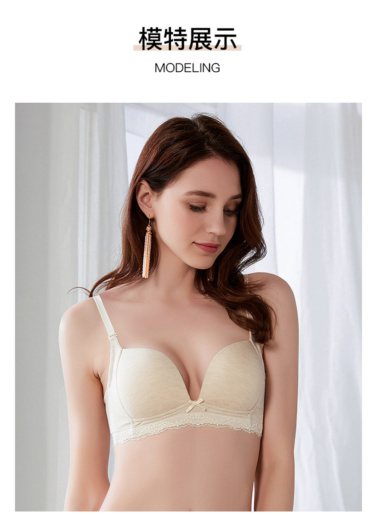 商品名称:【纯棉透气】内衣文胸小胸聚拢蕾丝花边无钢圈侧收上托文胸罩 276619