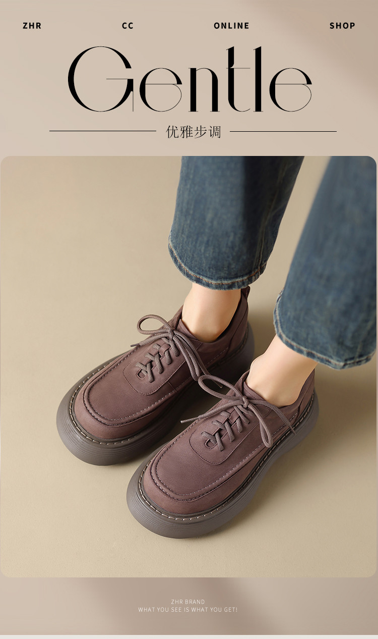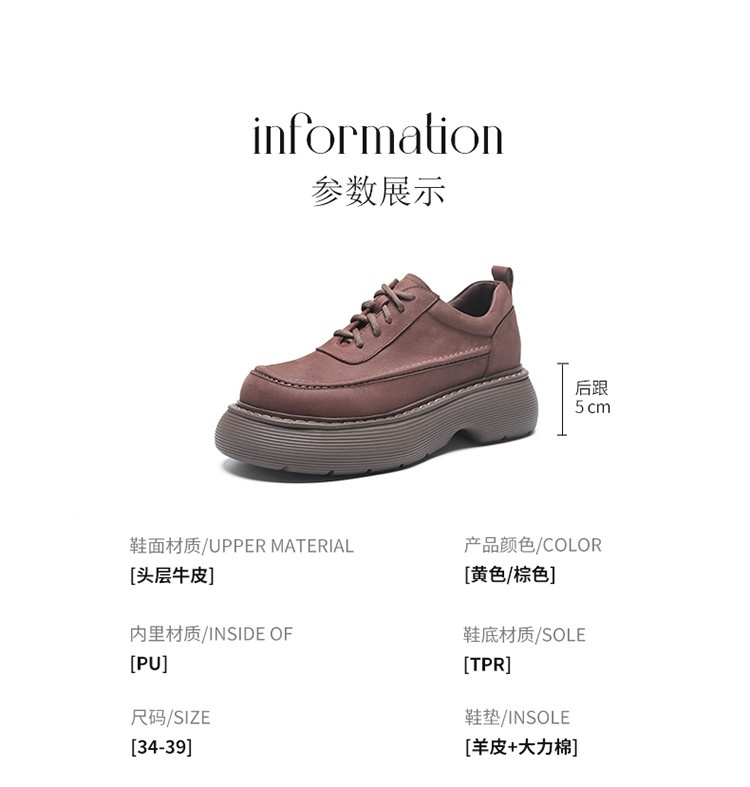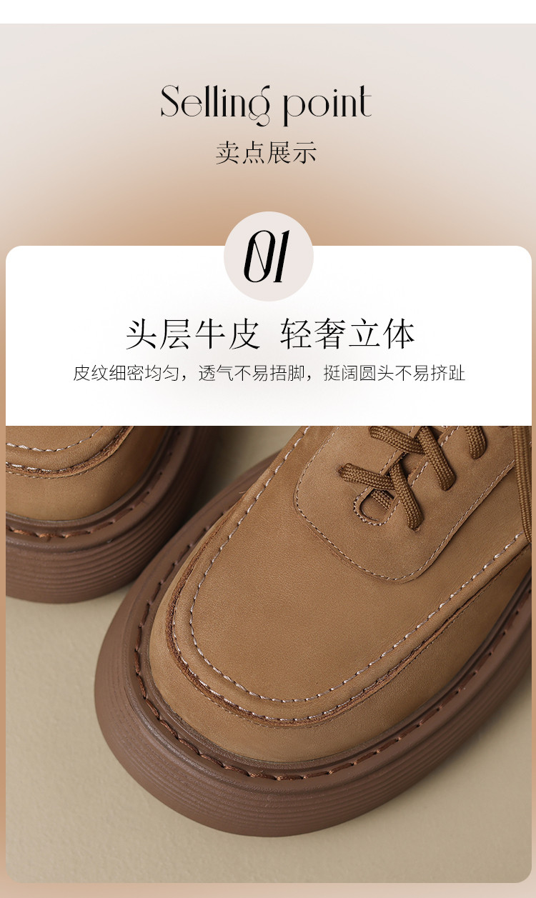 商品名称:【头层牛皮】厚底女单鞋真皮软皮增高皮鞋女款英伦单鞋单鞋女春秋 509632