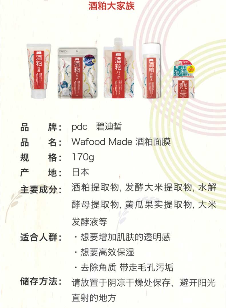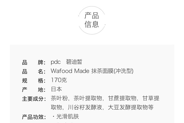 商品名称:pdc碧迪皙水洗酒糟面膜170g+抹茶面膜170g组合装 日本本土版