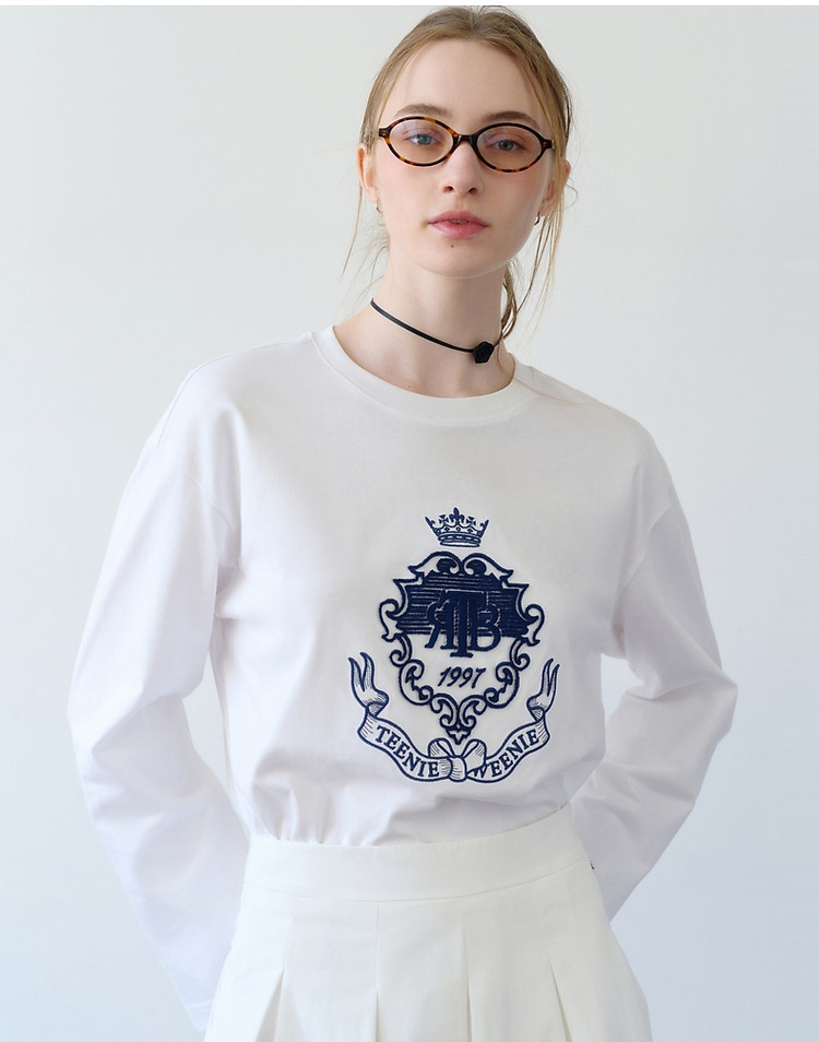 商品名称:长袖T恤小熊女装春装宽松圆领刺绣长袖T恤白色上衣 983553
