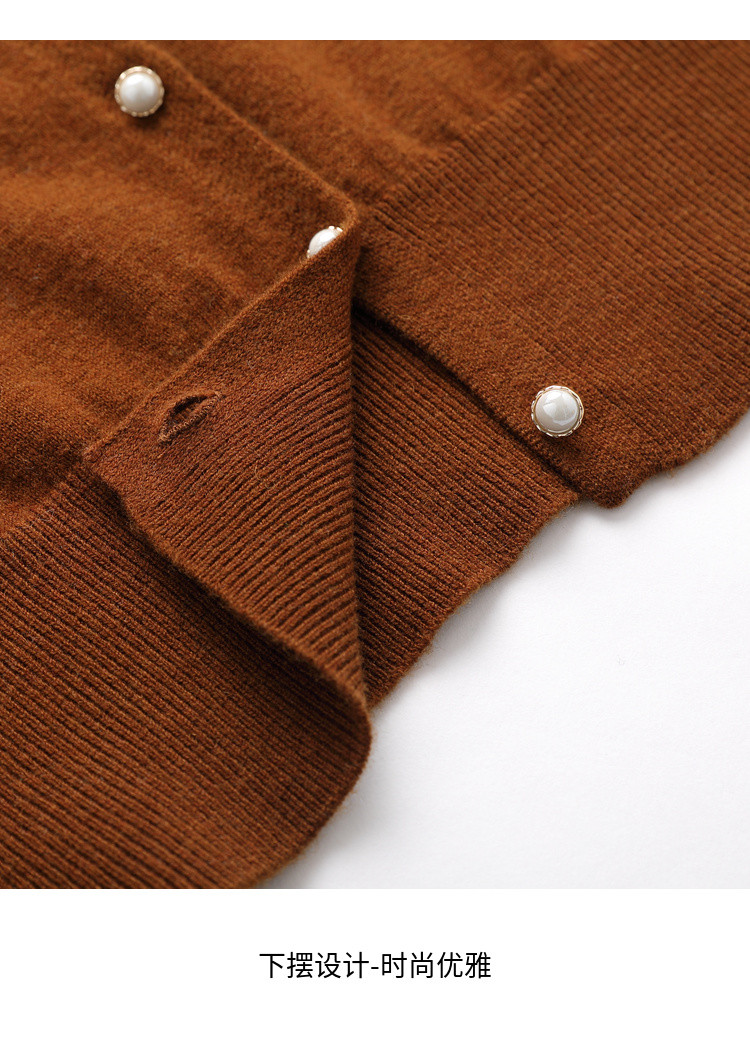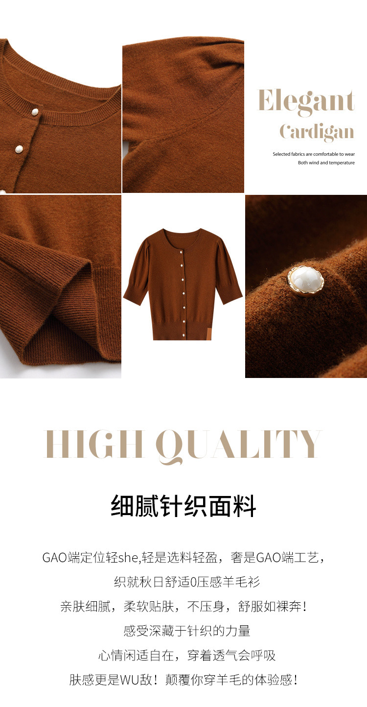 商品名称:【100%绵羊毛】纯色泡泡袖圆领短袖羊毛开衫针织T恤毛衣外套 489619