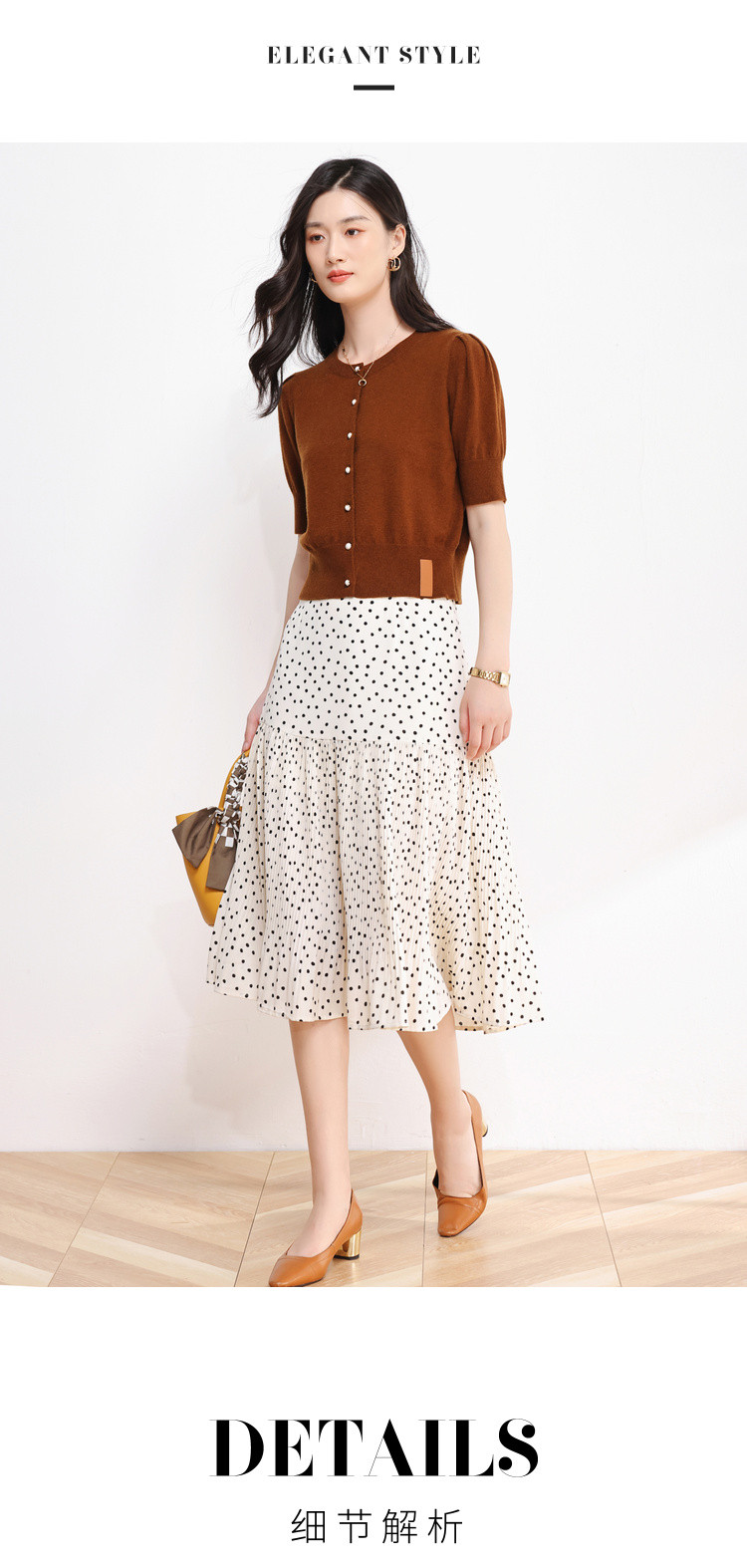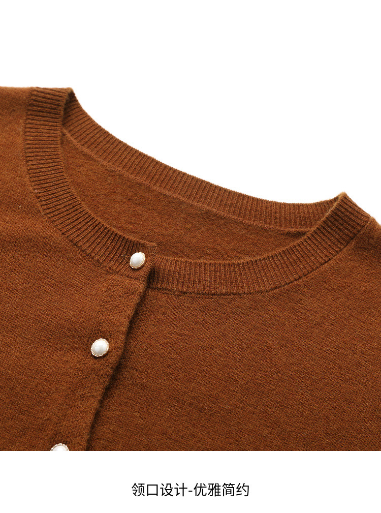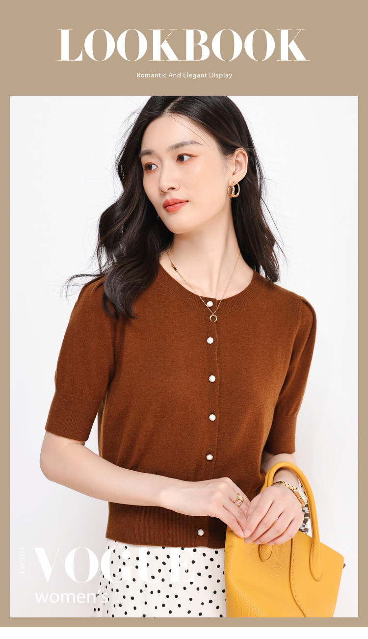 【100%绵羊毛】纯色泡泡袖圆领短袖羊毛开衫针织T恤毛衣外套 489619
