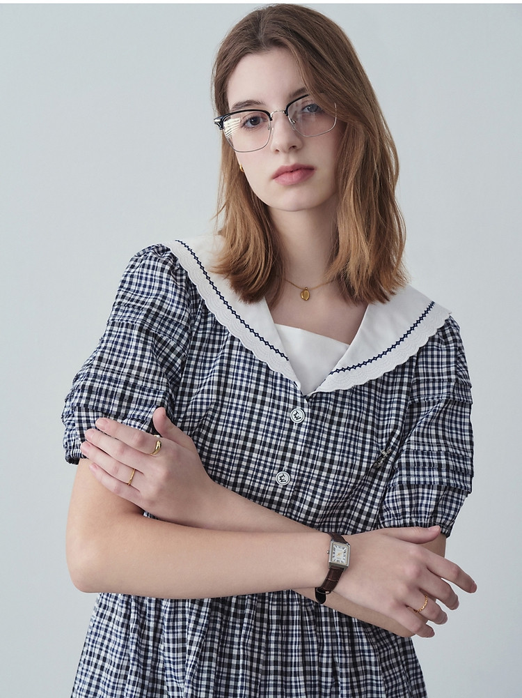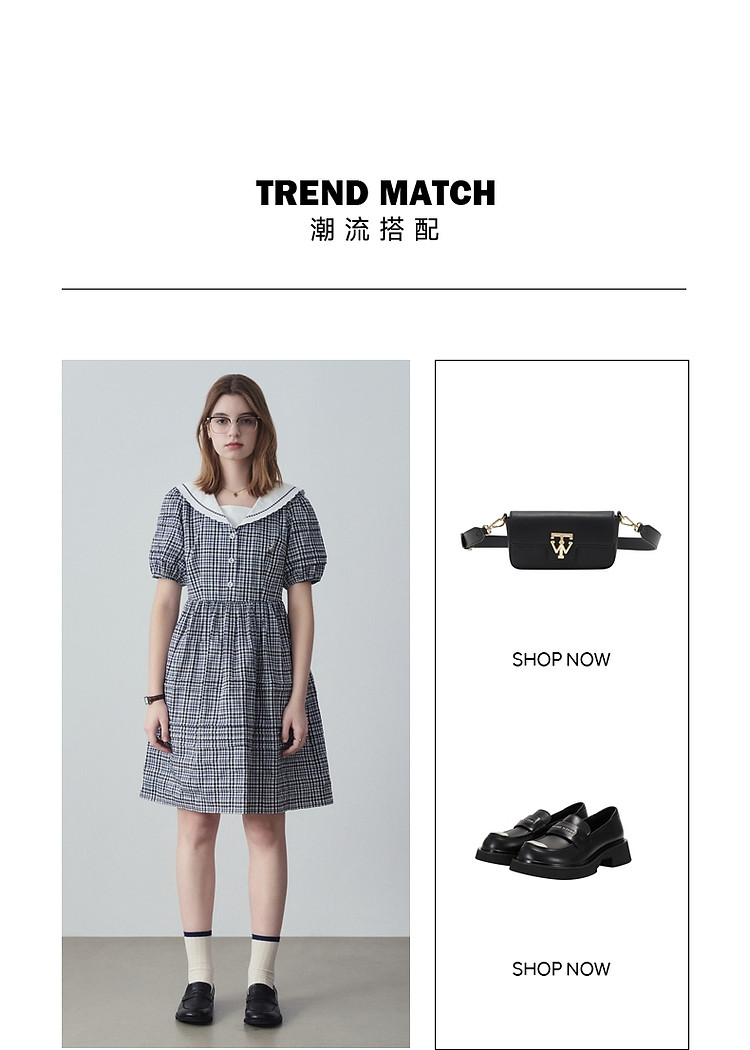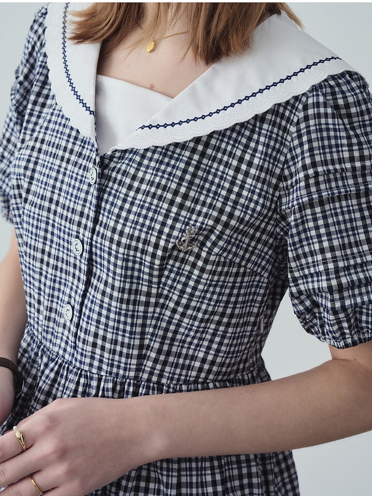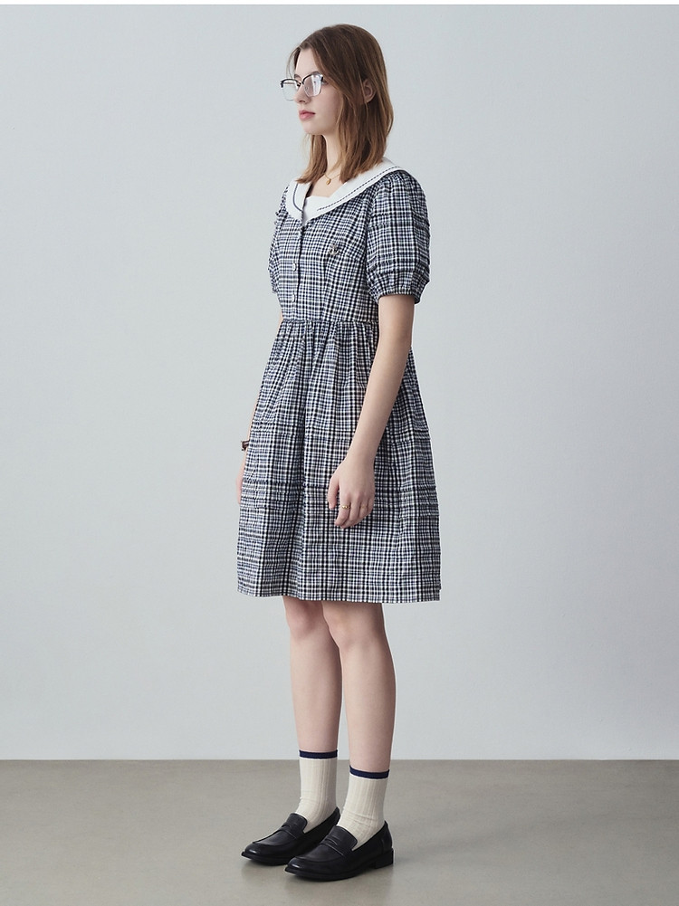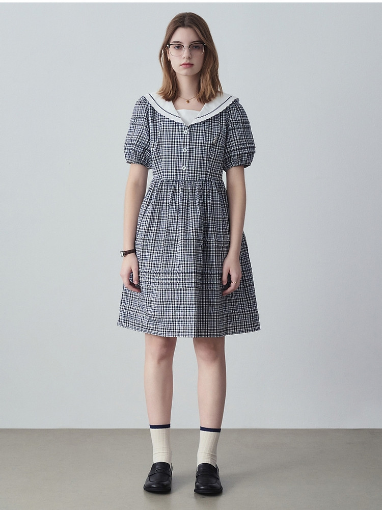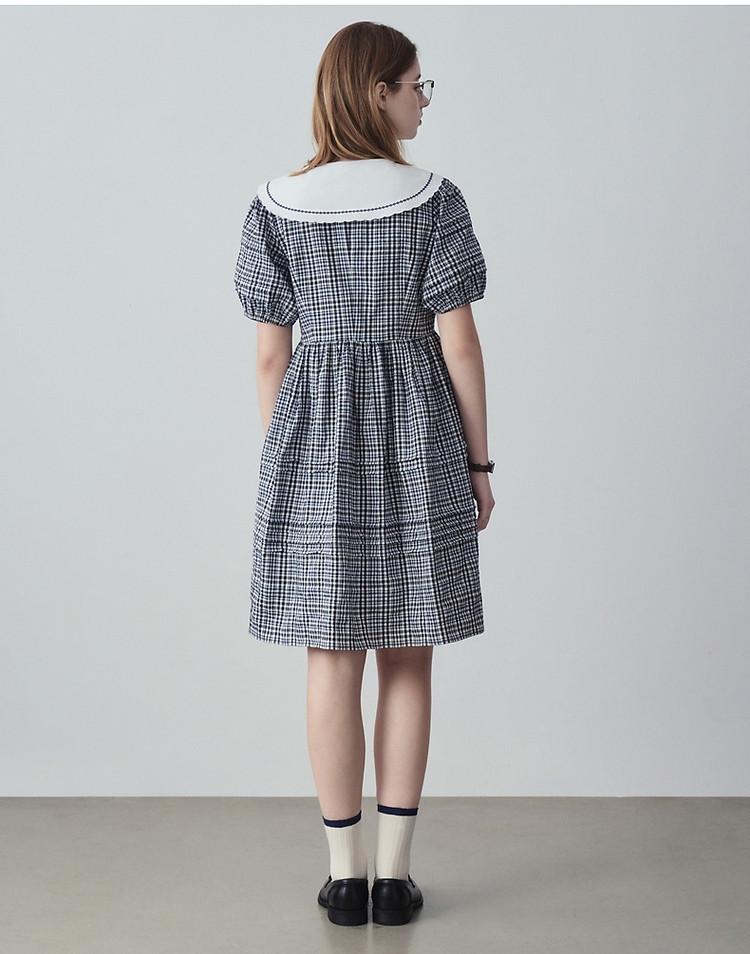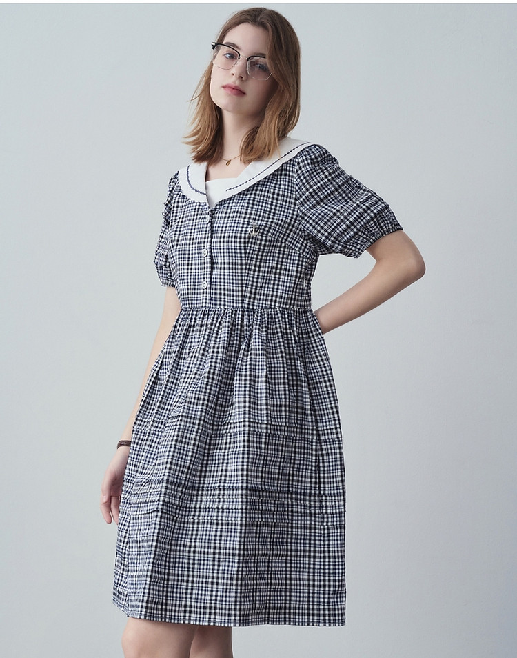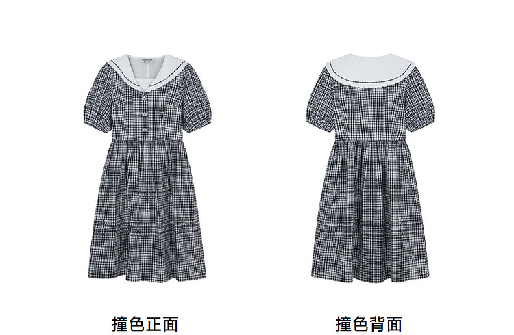 商品名称:小熊夏季款娃娃领连衣裙格纹裙蓬蓬裙时尚女士 776321