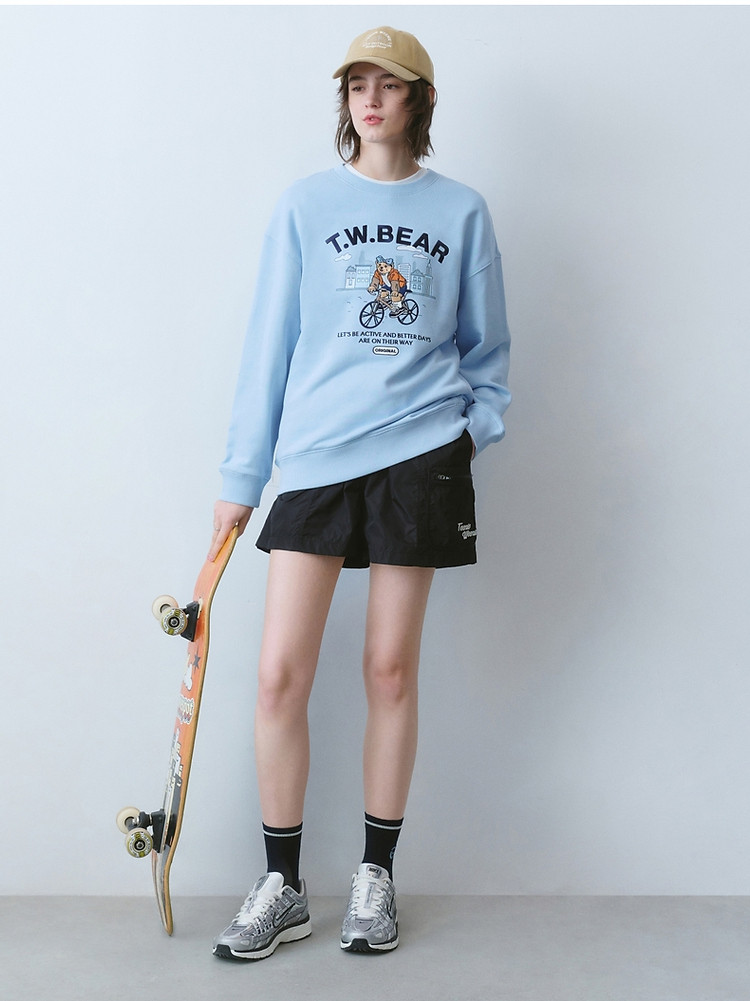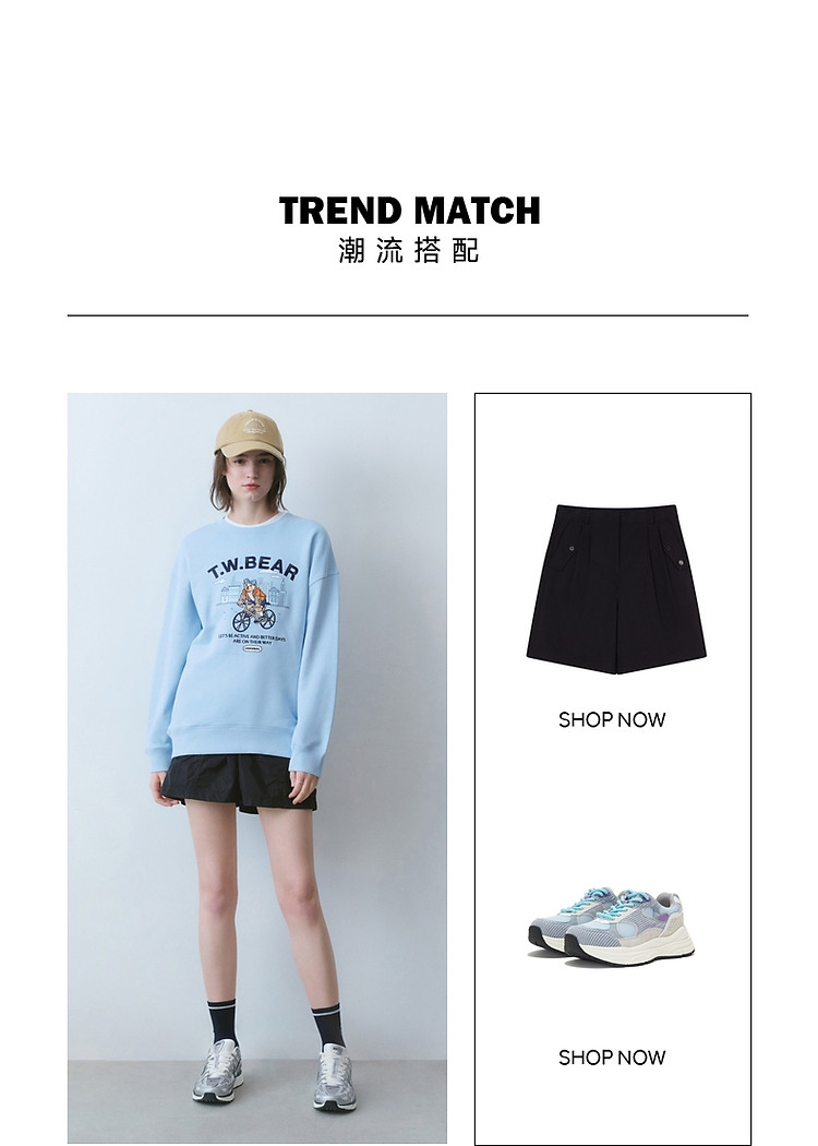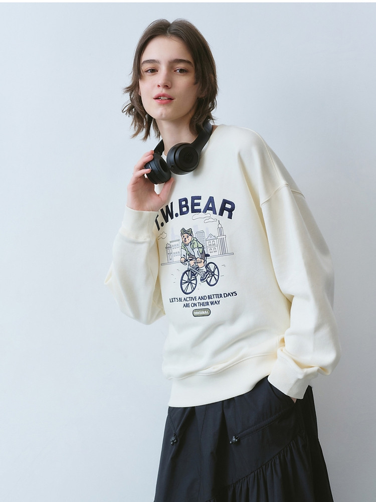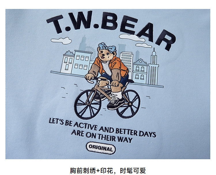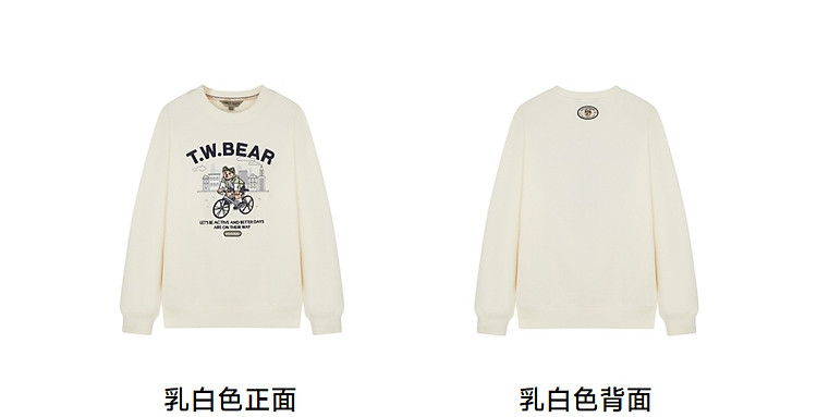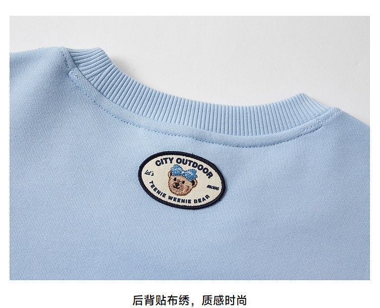 商品名称:小熊女装春季棉质圆领学院风卫衣宽松短款T恤上衣女 607425