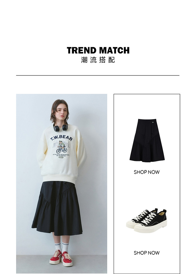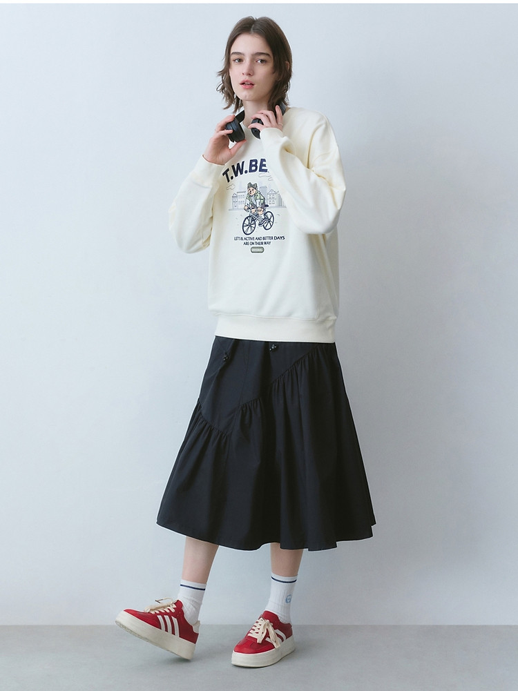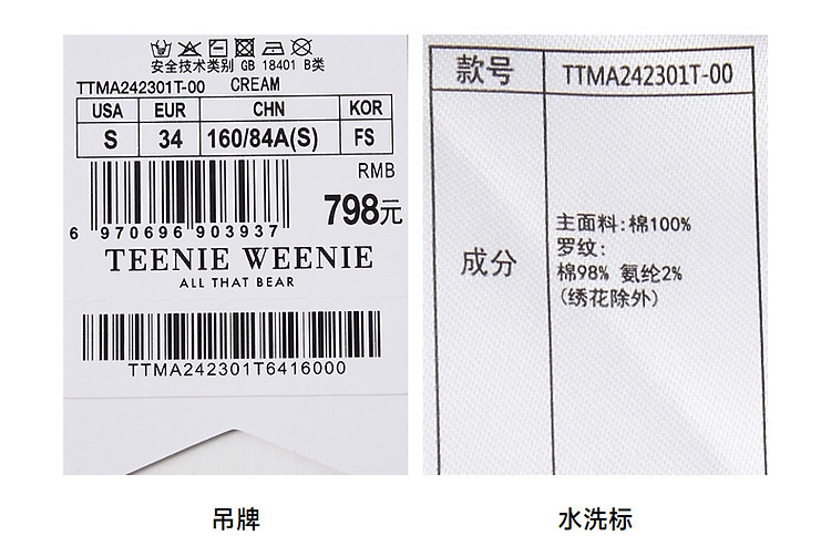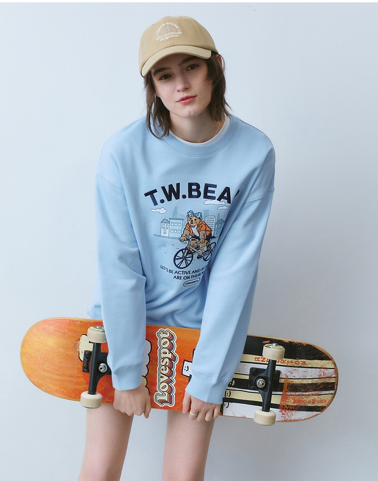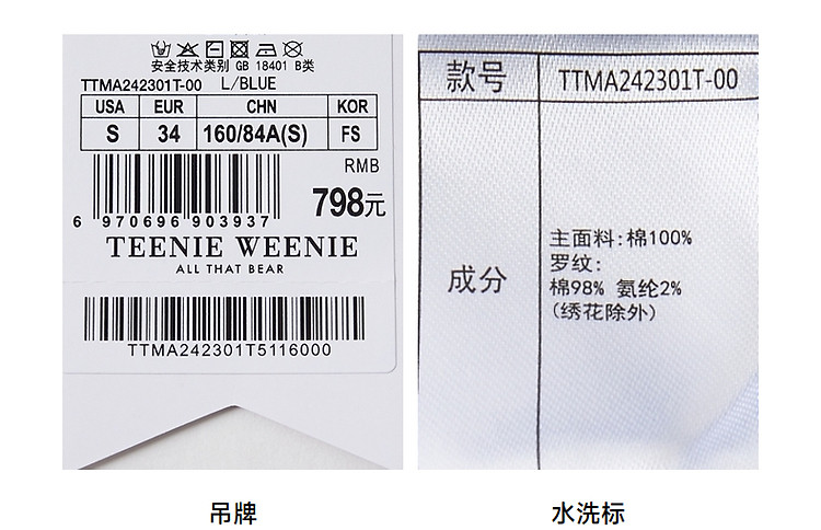 商品名称:小熊女装春季棉质圆领学院风卫衣宽松短款T恤上衣女 607425