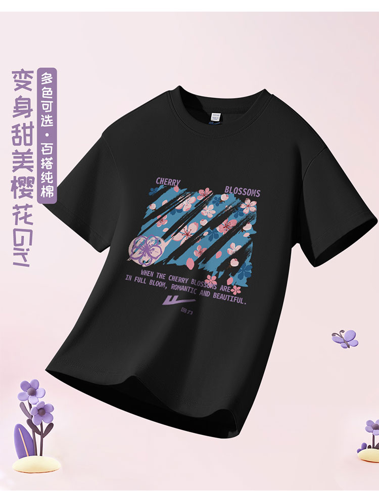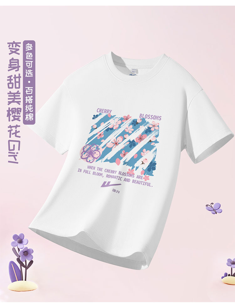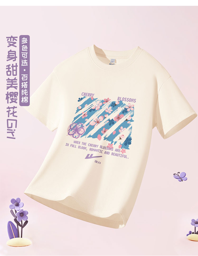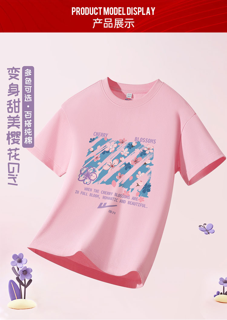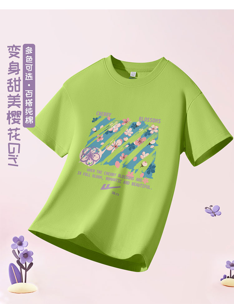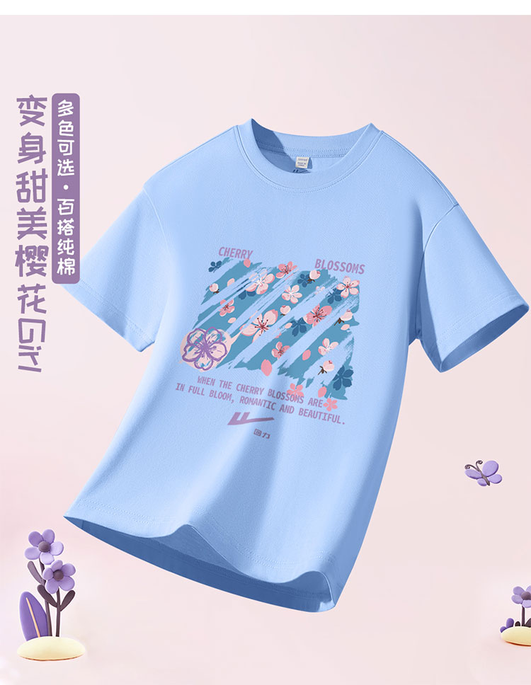商品名称:【童装】24年夏季女童夏装短袖薄款儿童纯棉上衣女孩樱花T恤 593427