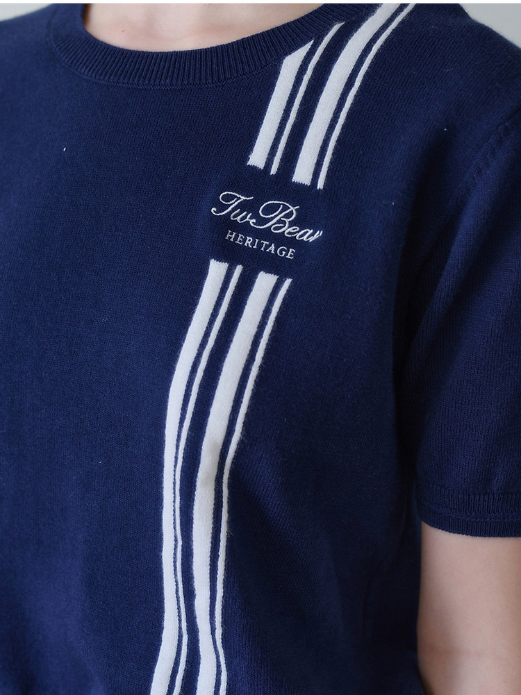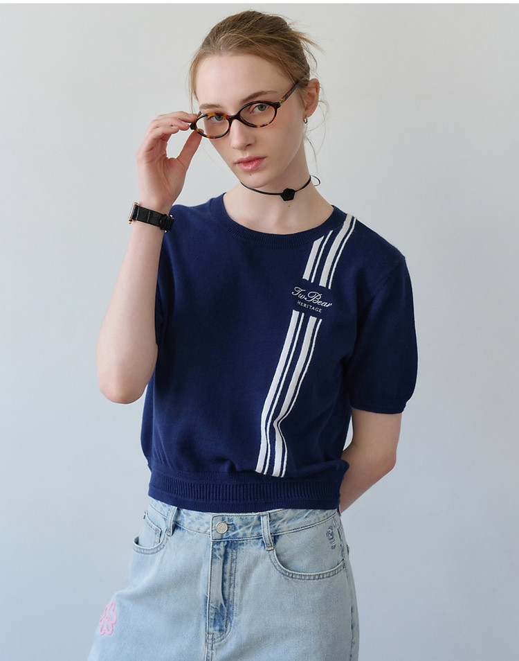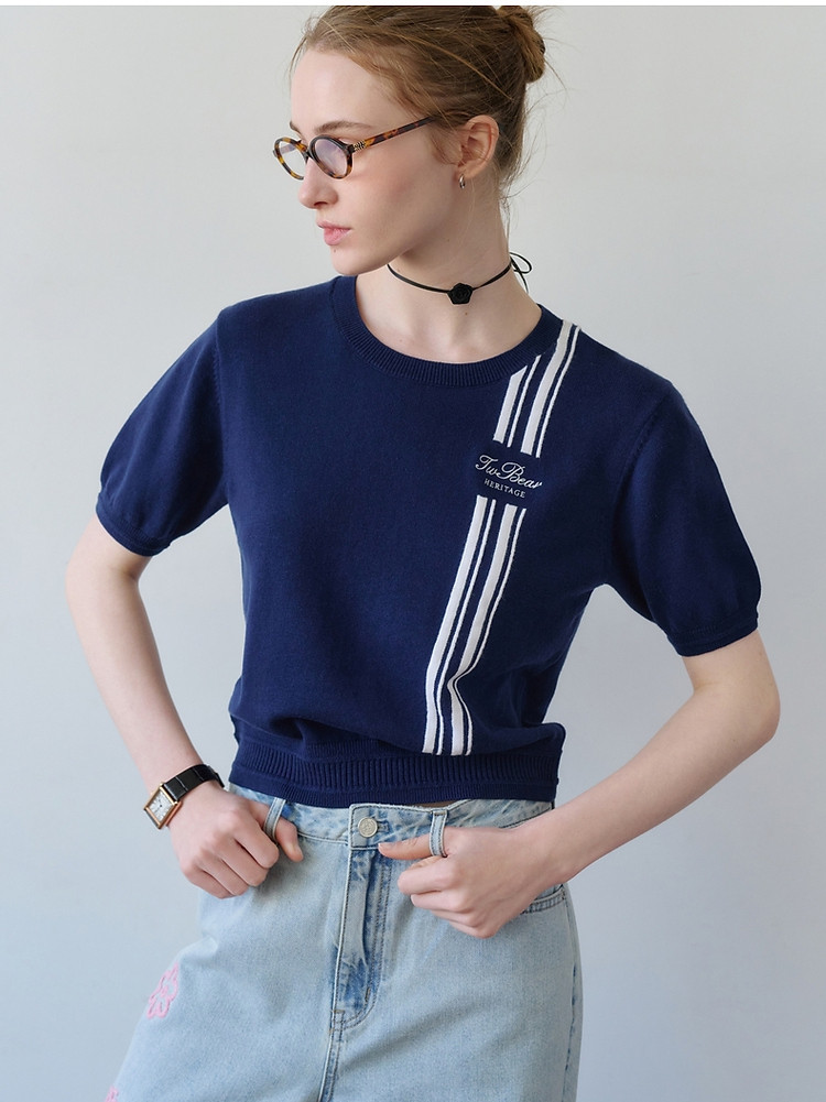 短袖毛衫小熊女装时髦条纹短袖针织衫毛衣套头衫 465281