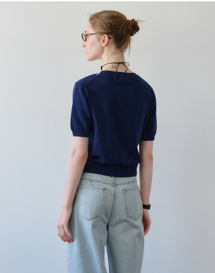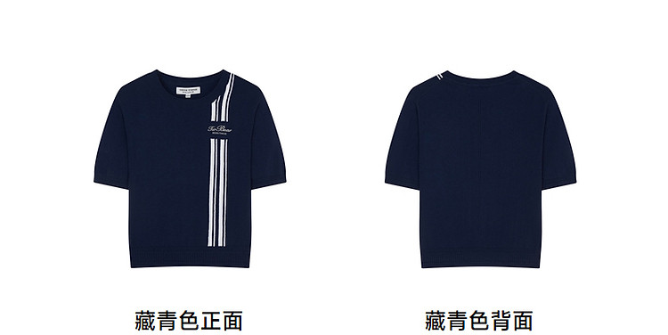 商品名称:短袖毛衫小熊女装时髦条纹短袖针织衫毛衣套头衫 465281