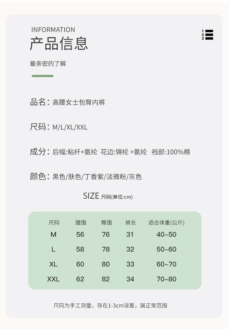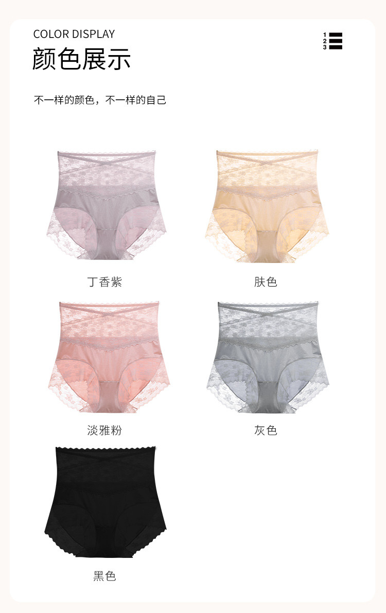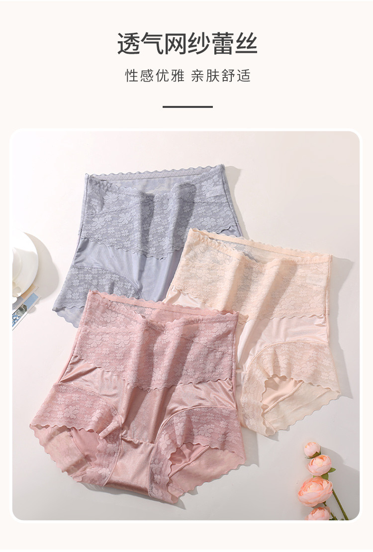 商品名称:【高腰性感蕾丝】3条装舒适高腰收腹提臀透气纯棉裆女士内裤女 621534