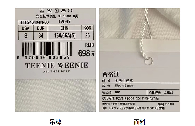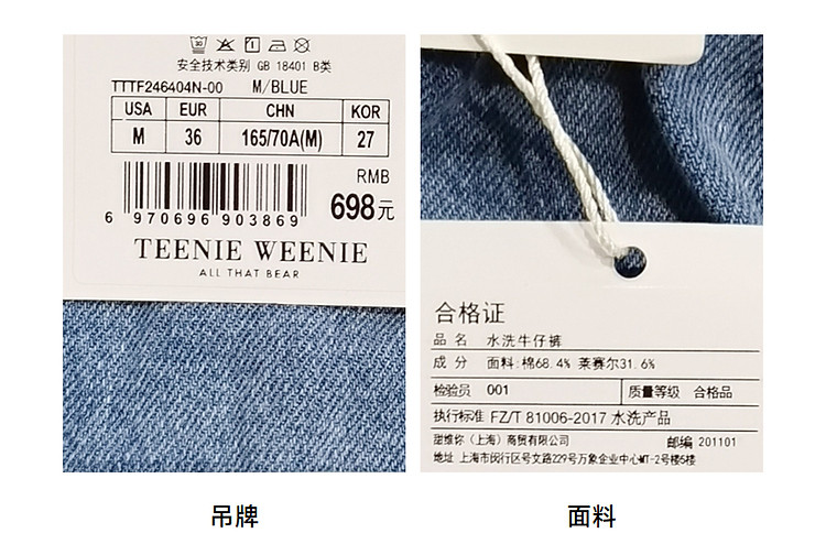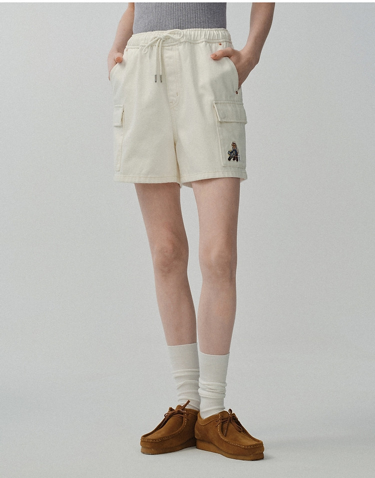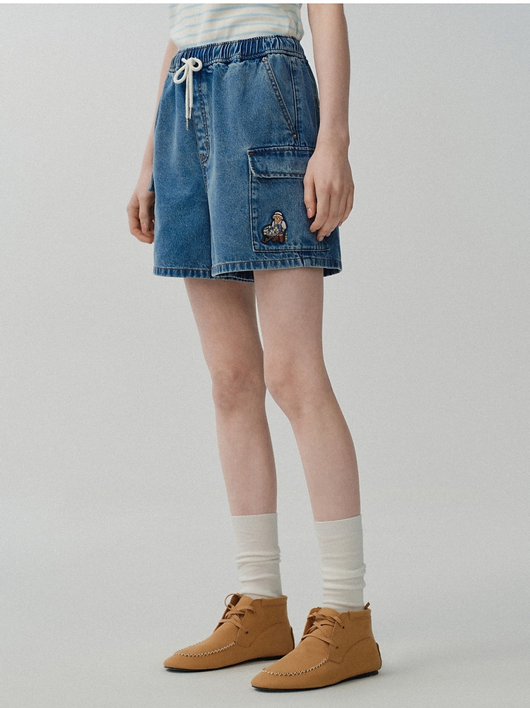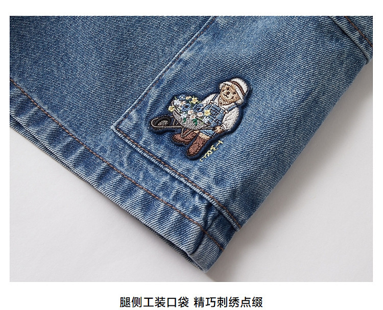 商品名称:小熊女装宽松直筒工装牛仔短裤四分裤子 562497