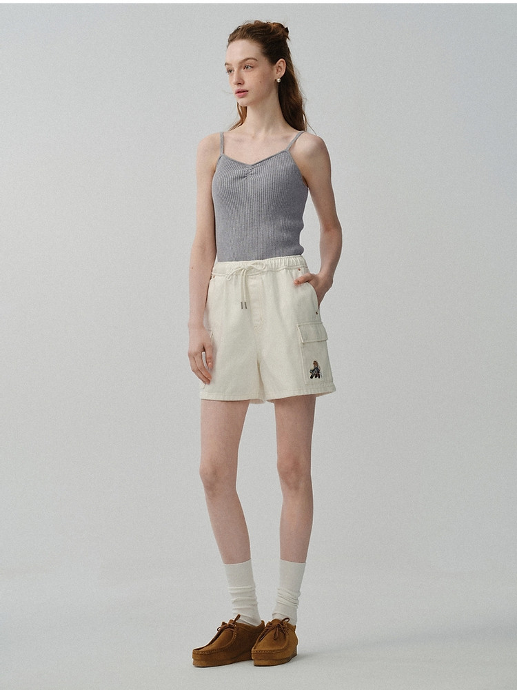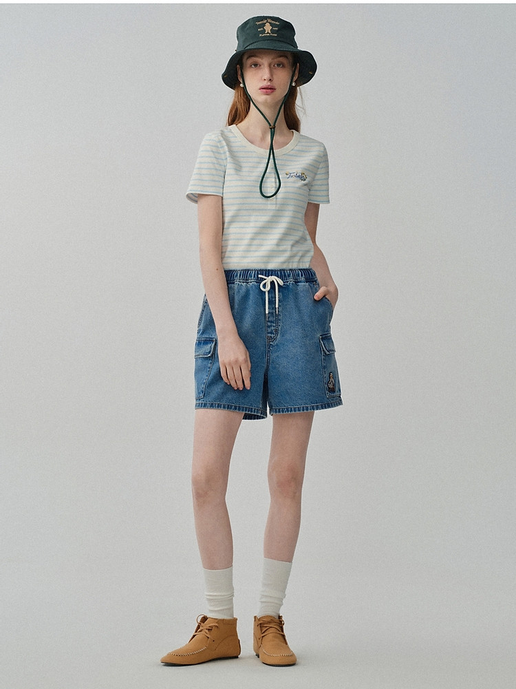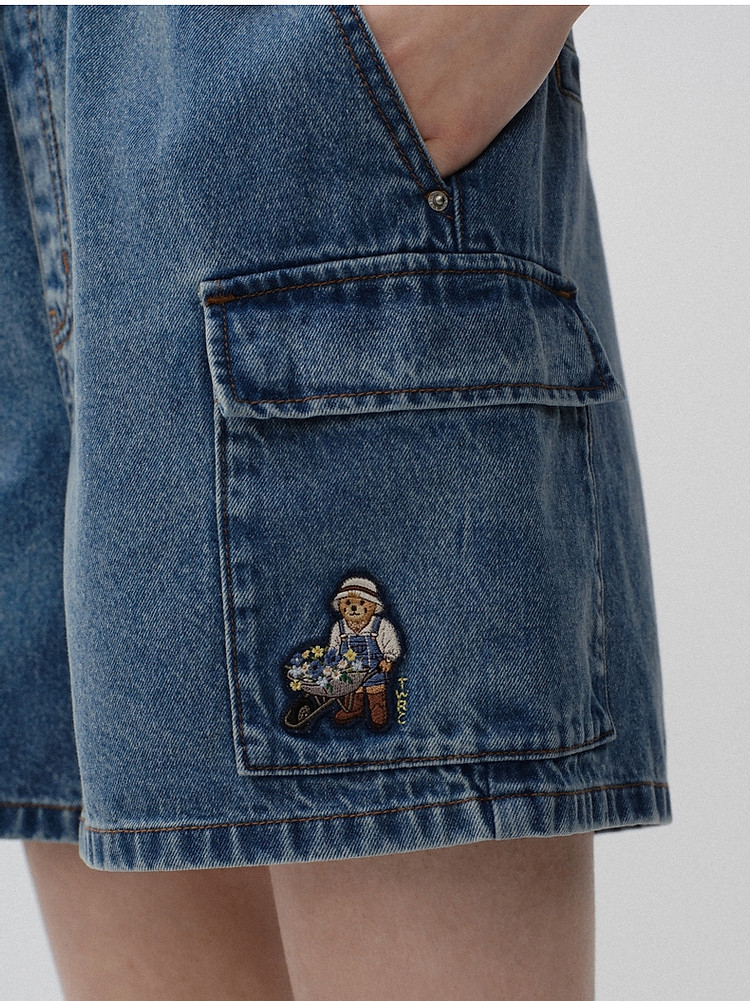 小熊女装宽松直筒工装牛仔短裤四分裤子 562497
