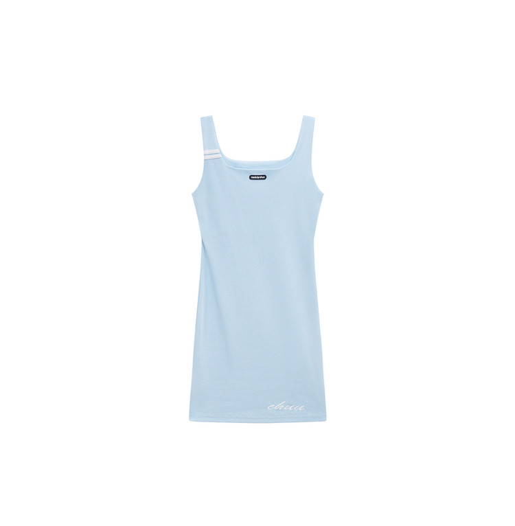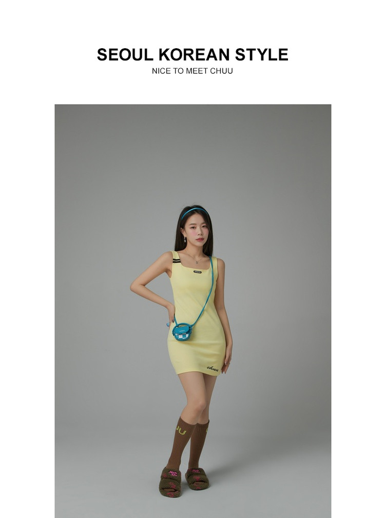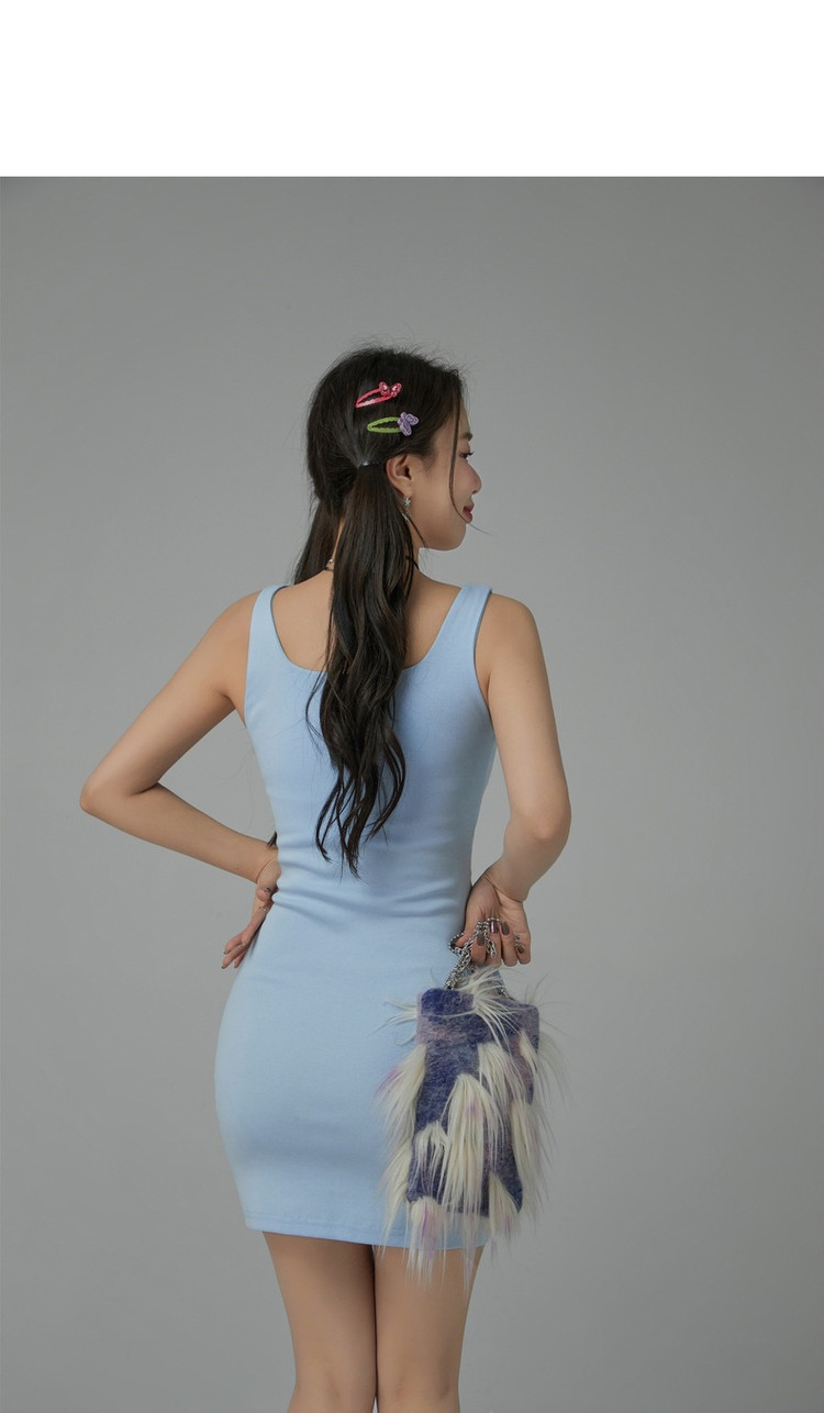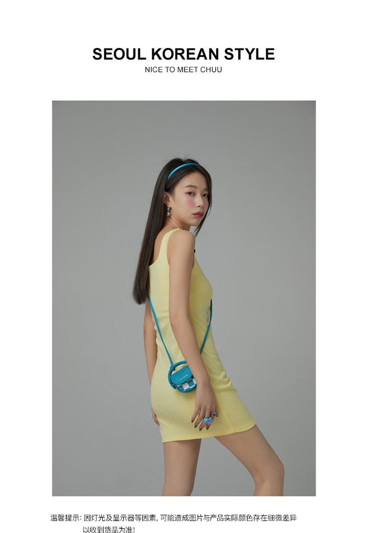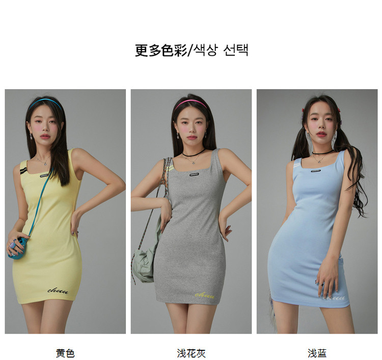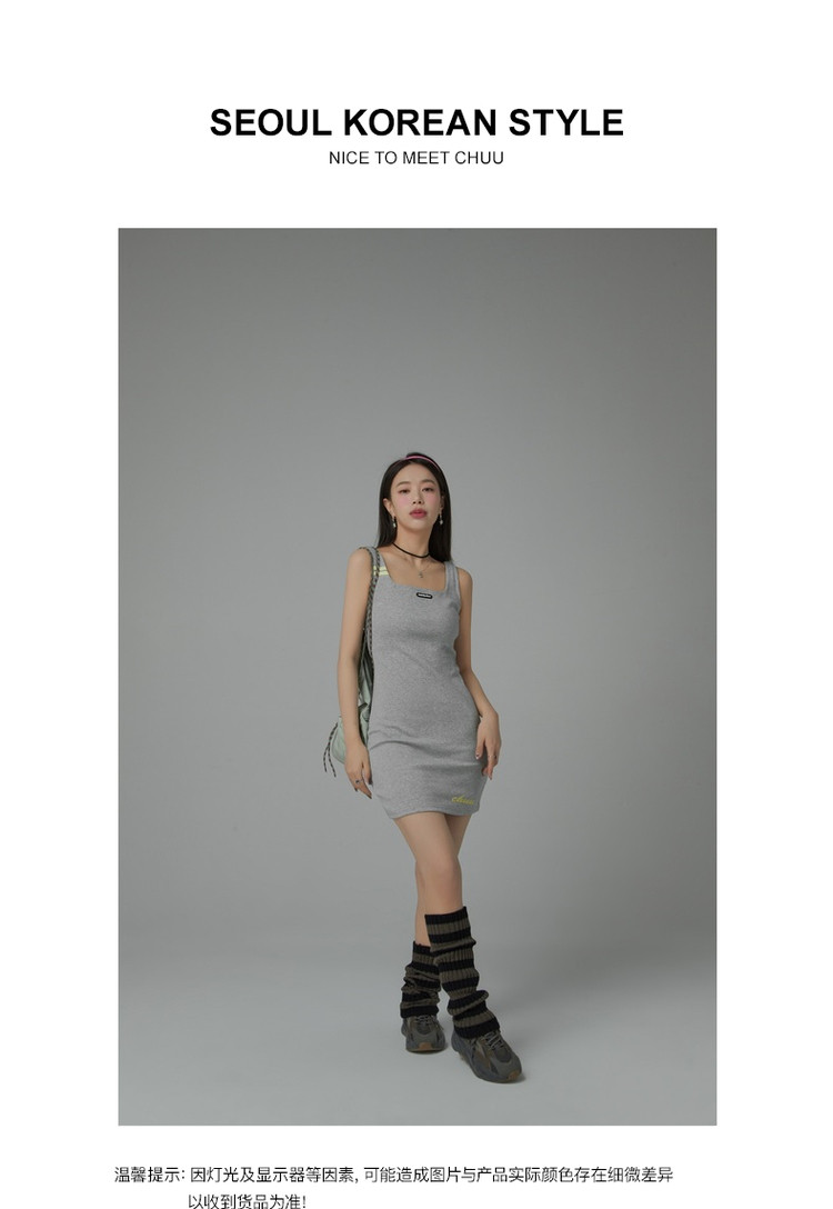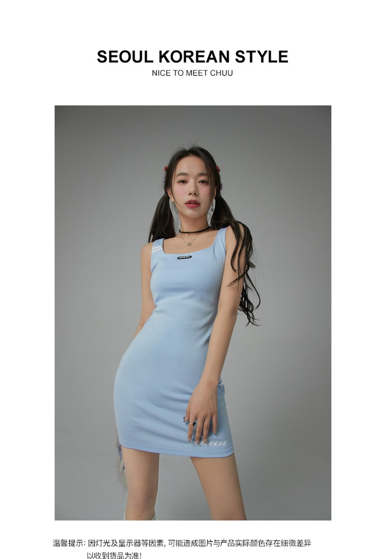 商品名称:纯色绣花连衣裙女秋修身显瘦U型领针织吊带短裙子 001875