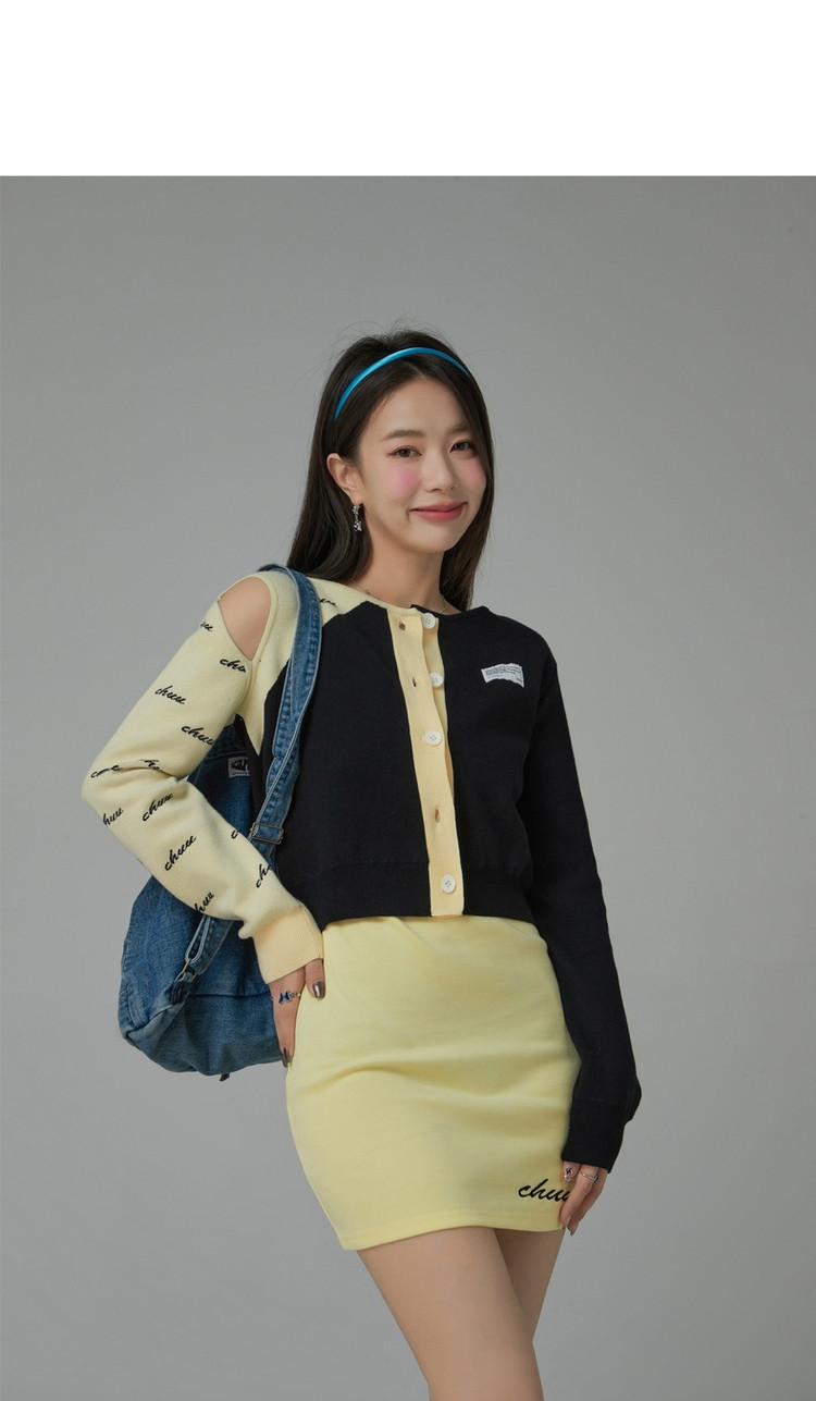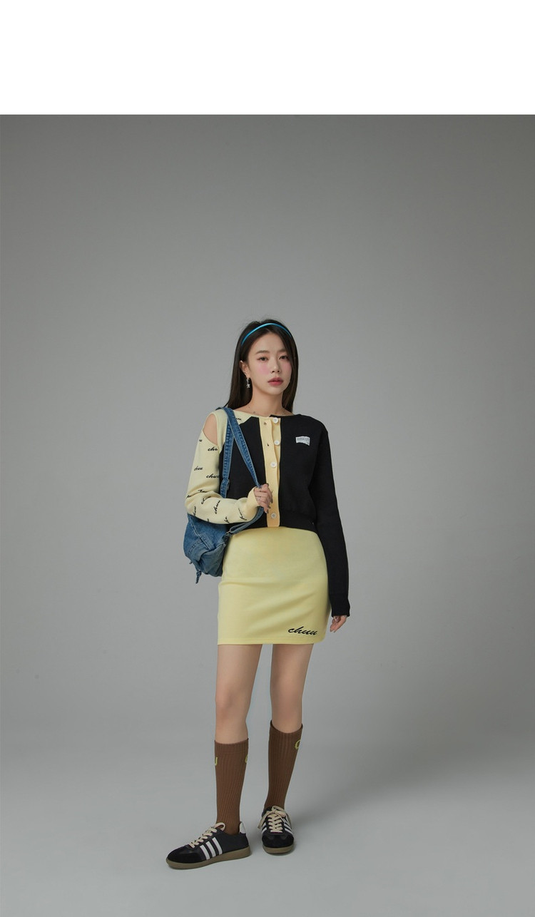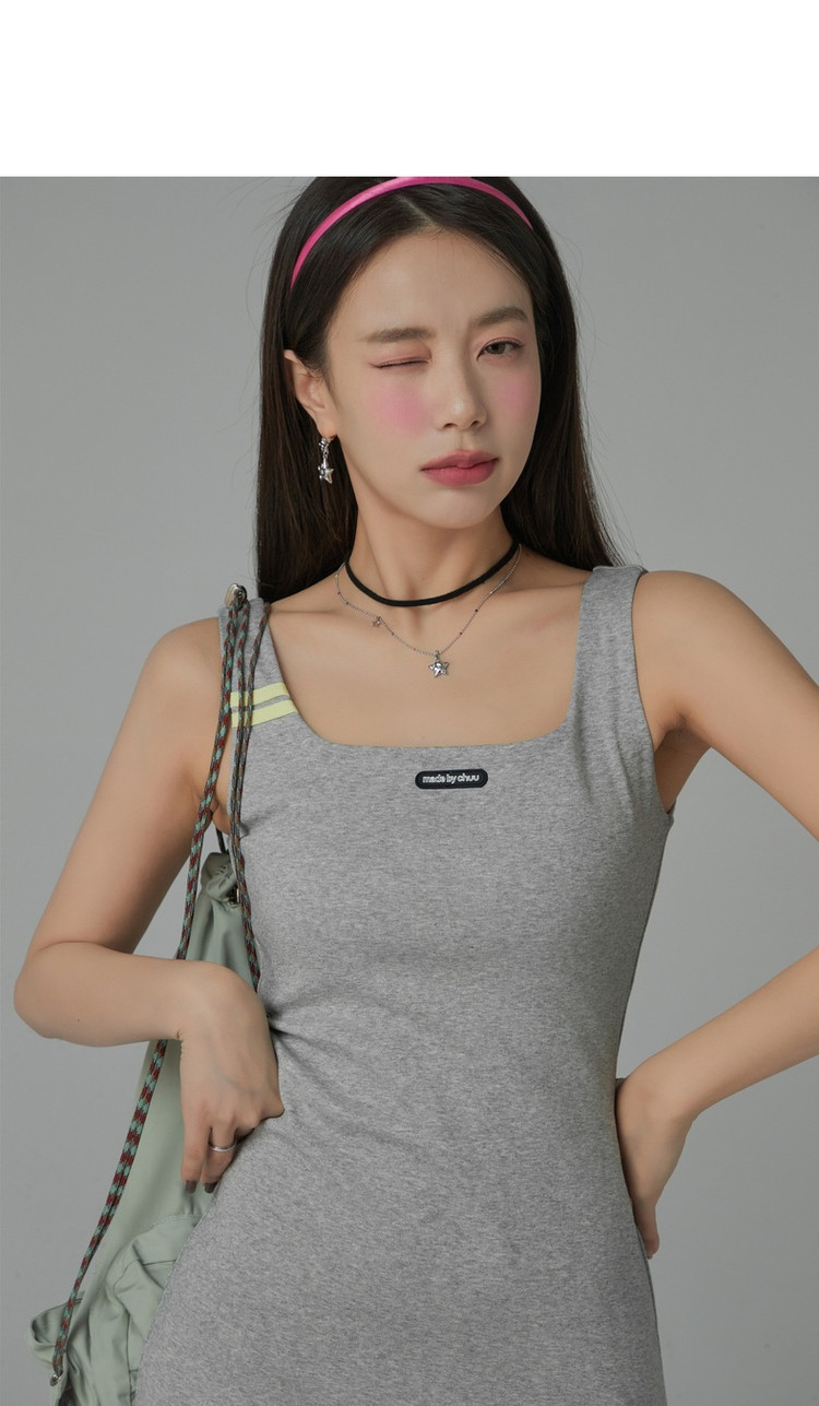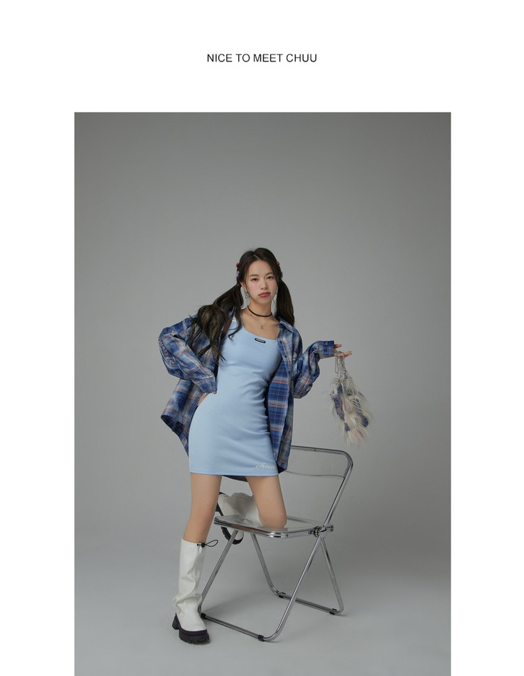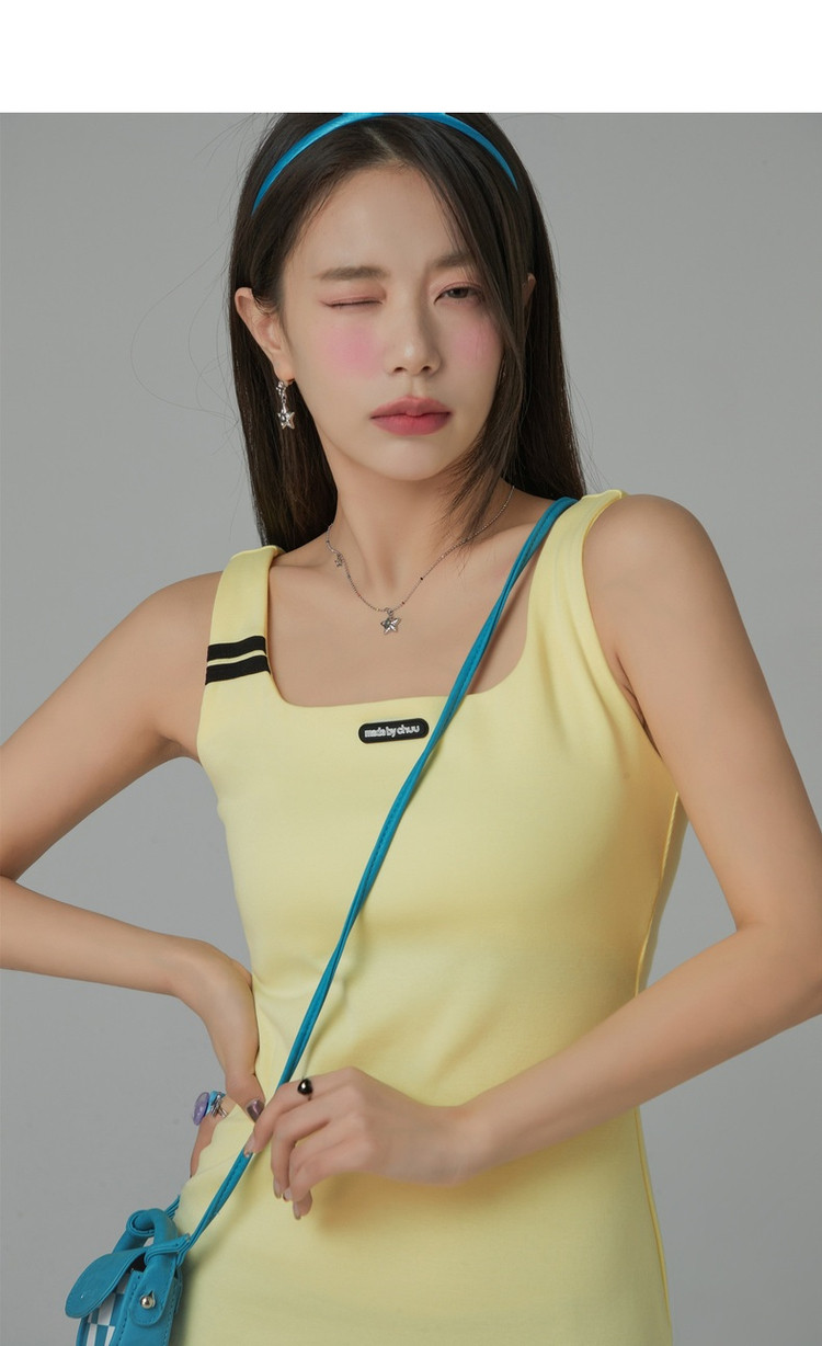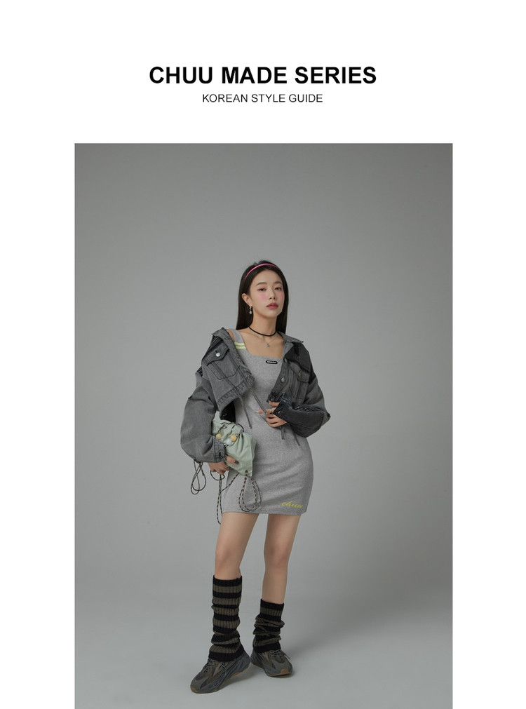商品名称:纯色绣花连衣裙女秋修身显瘦U型领针织吊带短裙子 001875