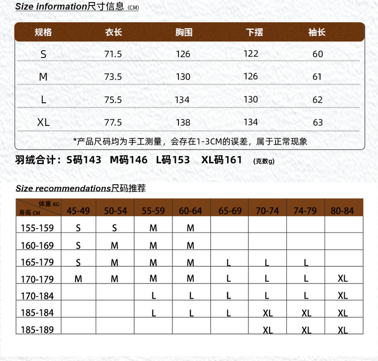 充绒量(g)