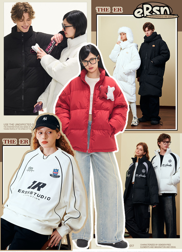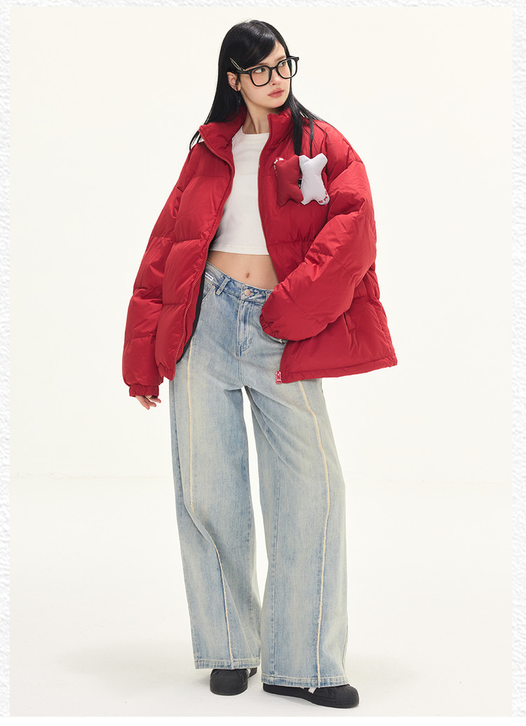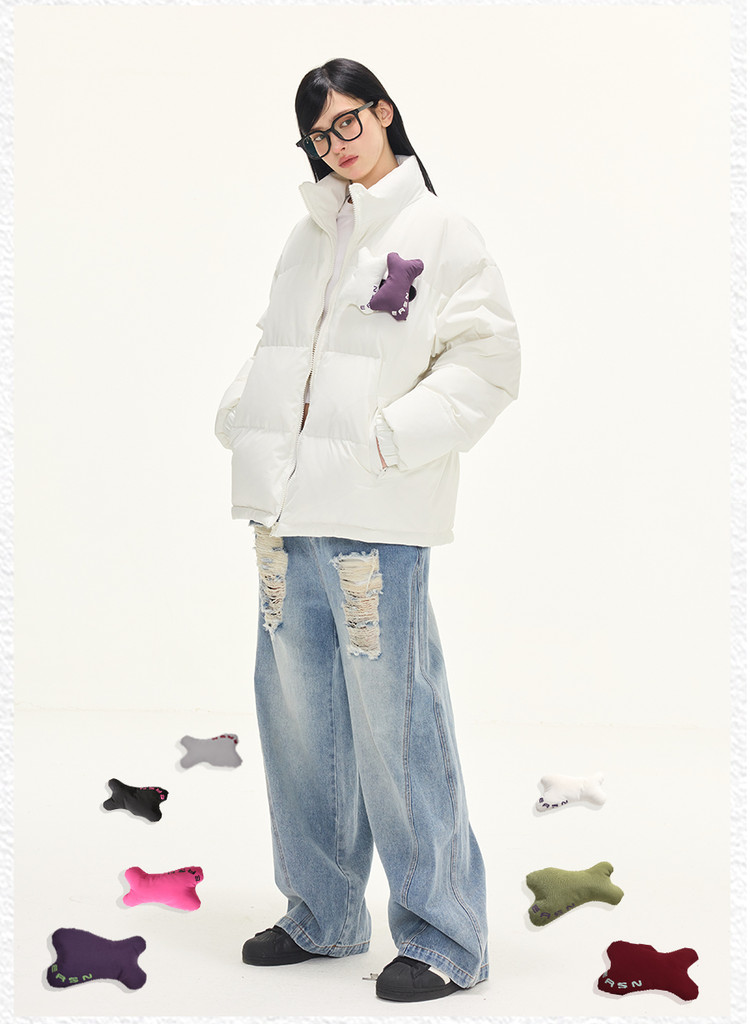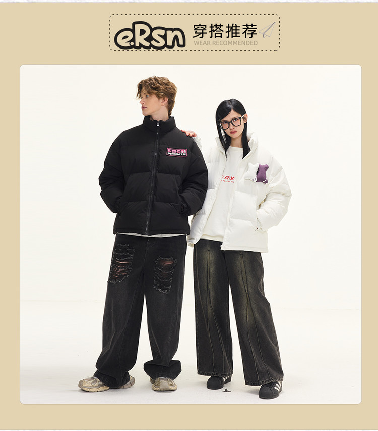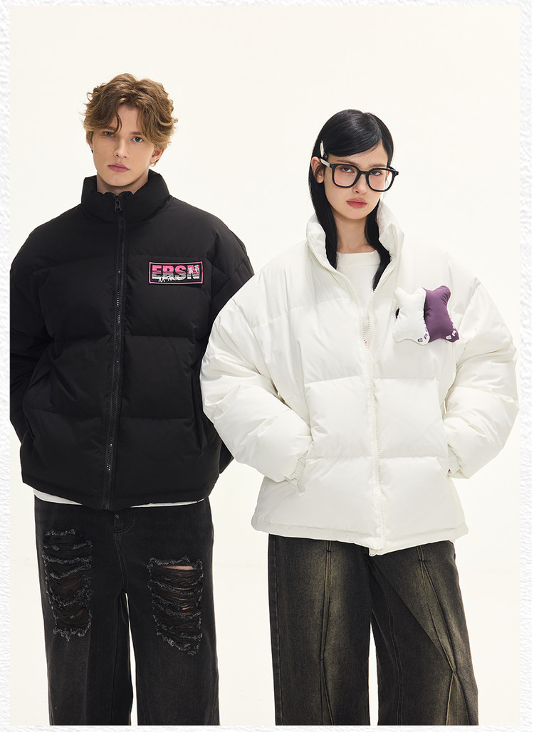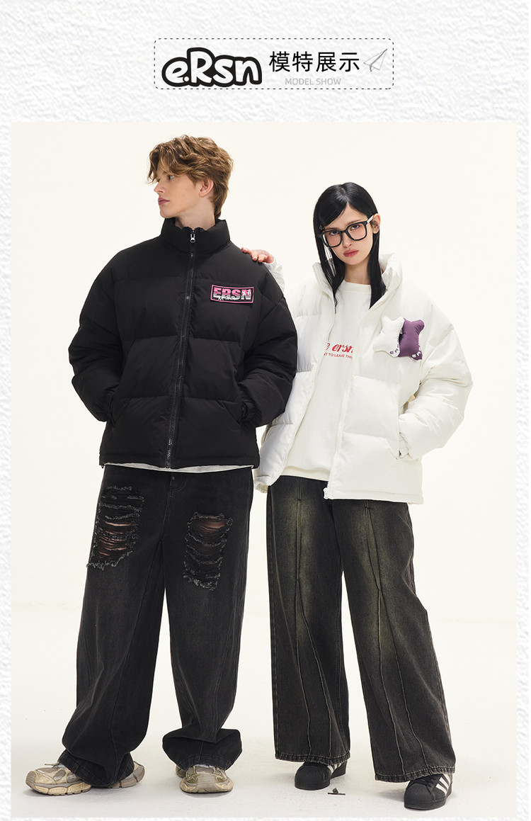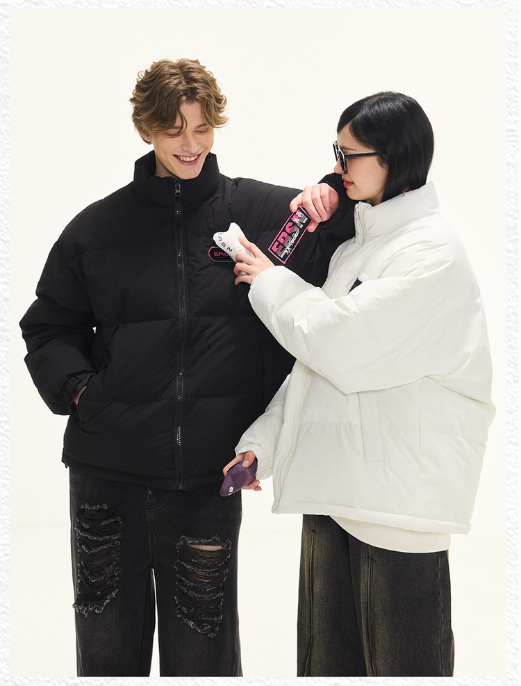 贴贴立领羽绒服外套冬季美式潮牌90白鸭绒情侣上衣 646551