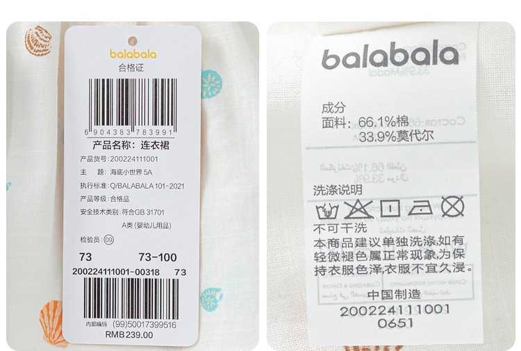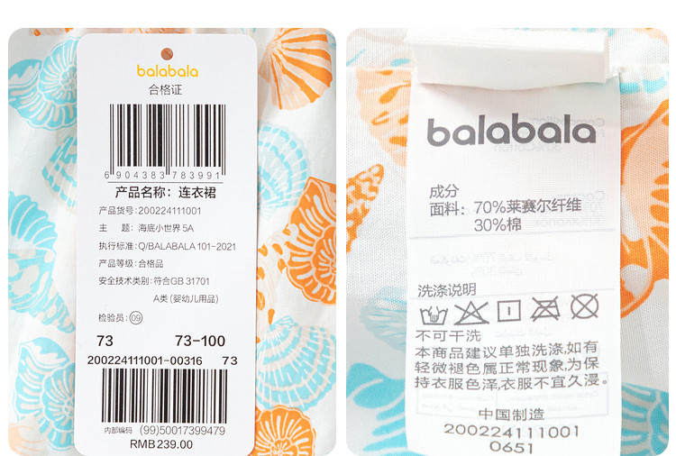 商品名称:巴拉巴拉女童连衣裙宝宝裙子婴儿公主裙夏装儿童满印洋气甜美气质 592453