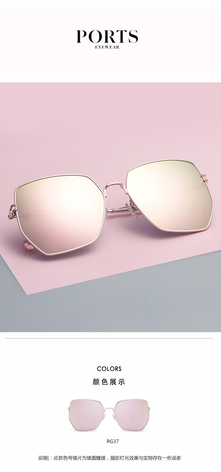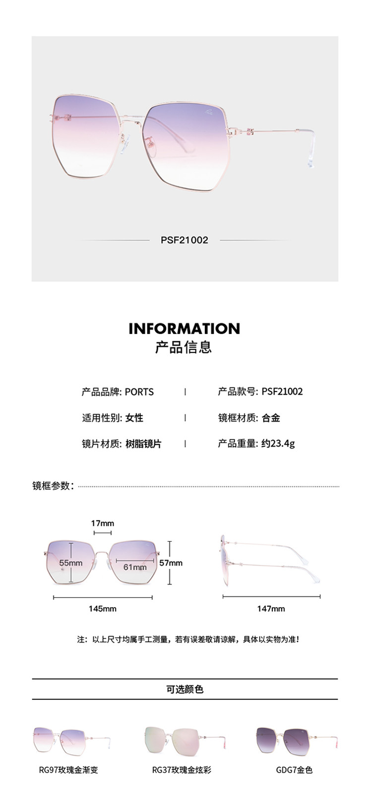 商品名称:PORTS女款日常时尚潮流金属大框太阳镜PSF21002 396106