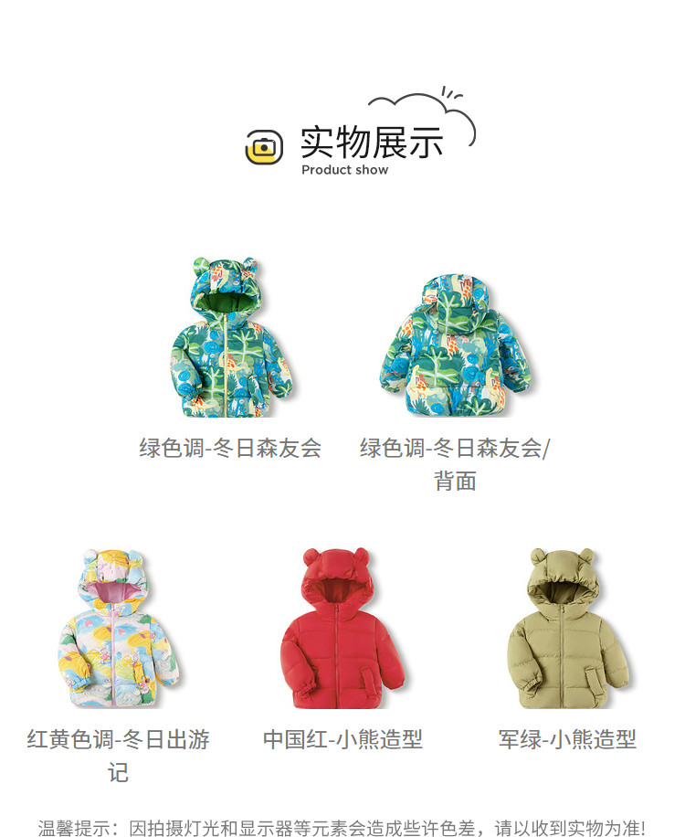 商品名称:萌趣造型儿童羽绒服男童女童外套宝宝冬装上衣休闲外套 178885