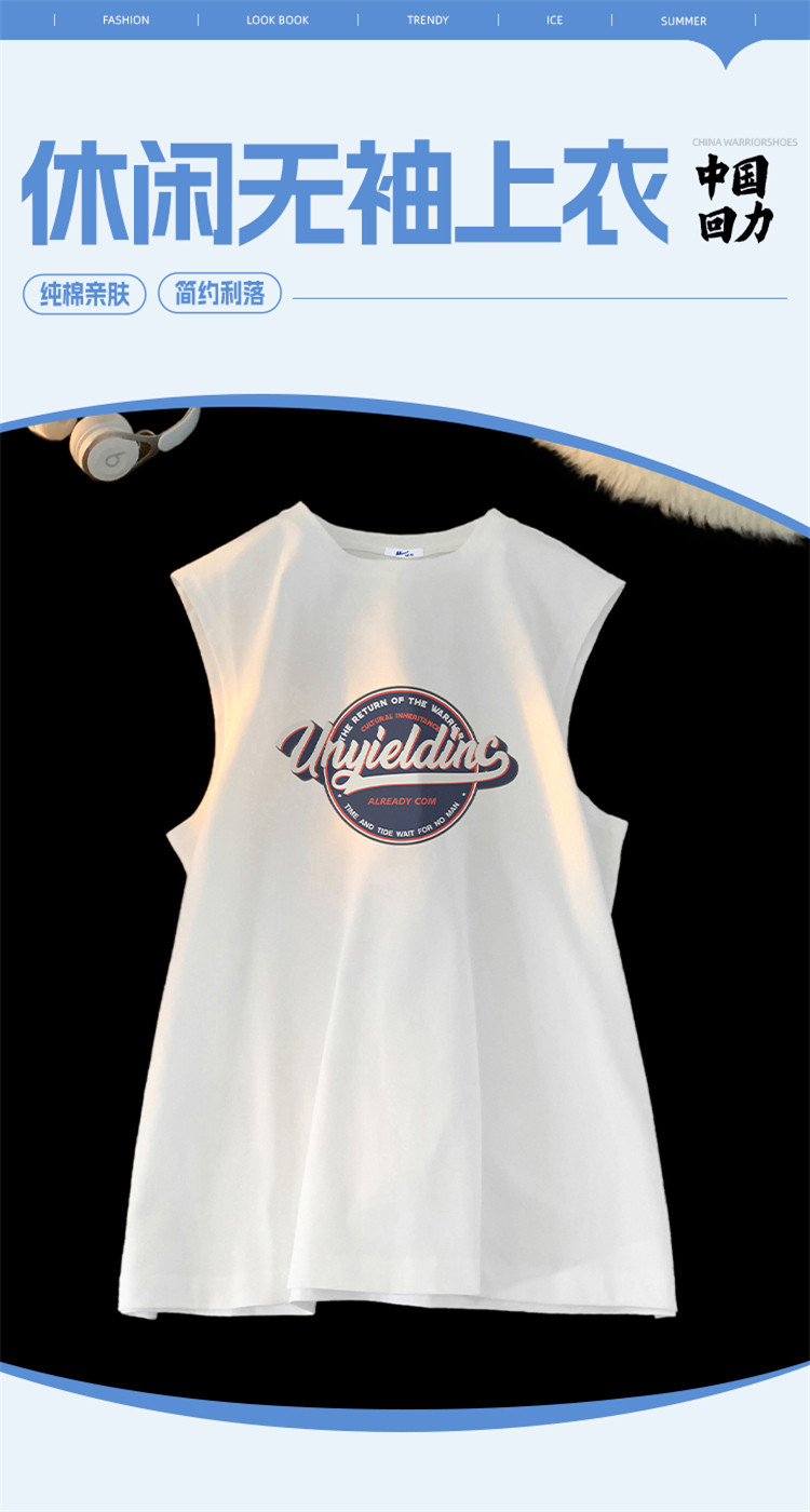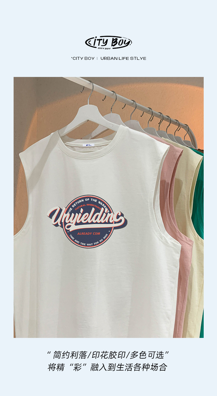 商品名称:重磅纯棉夏季背心男款潮牌宽松圆领t恤港风运动无袖背心健身衣服 726611