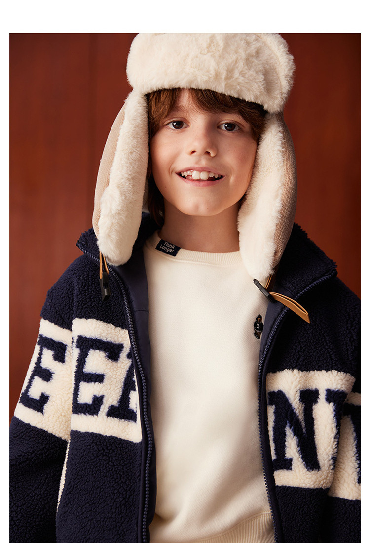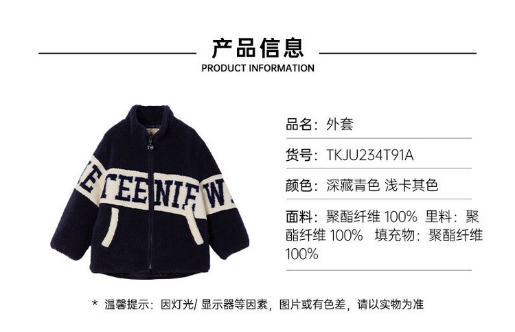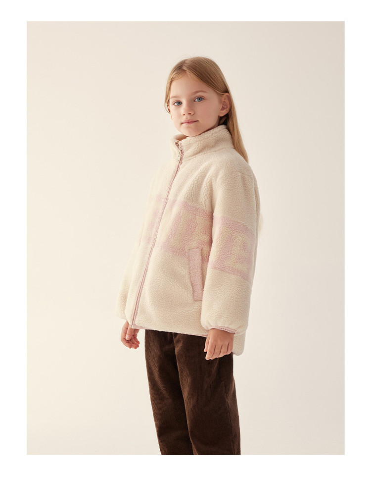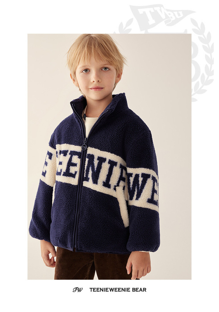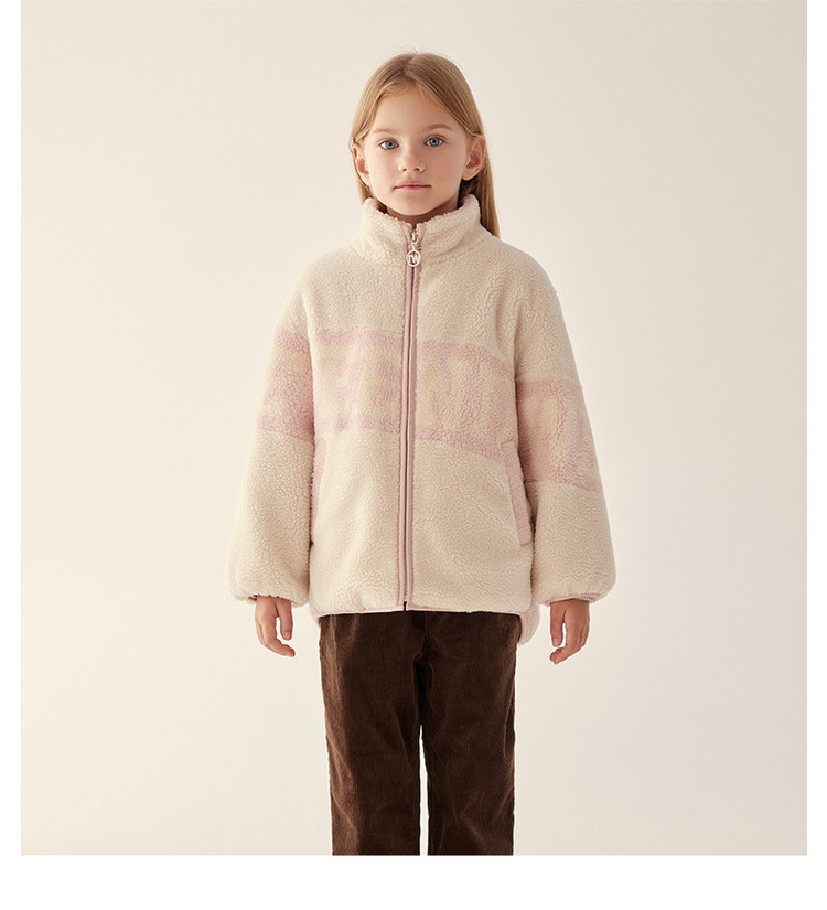 商品名称:小熊童装春季款男女童撞色拉链仿羊羔绒外套 397249
