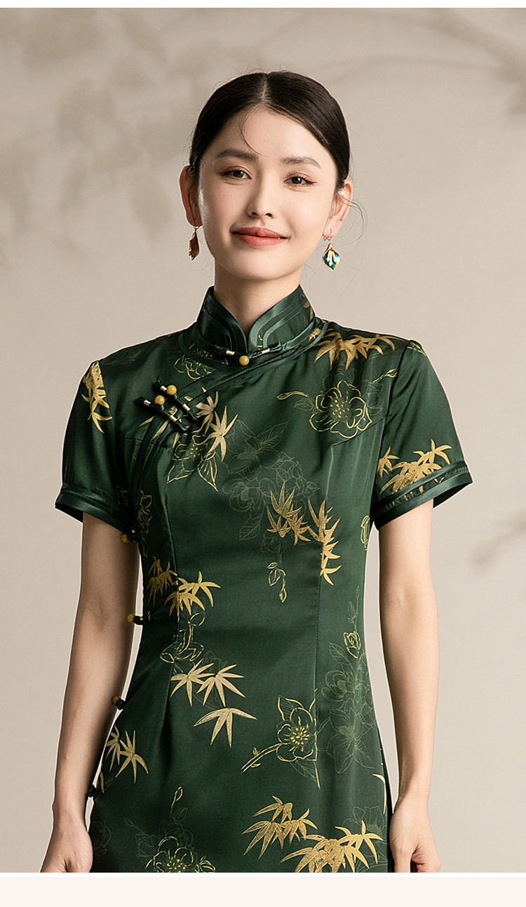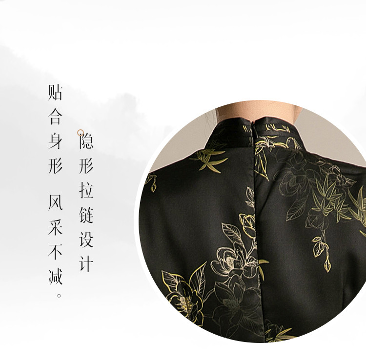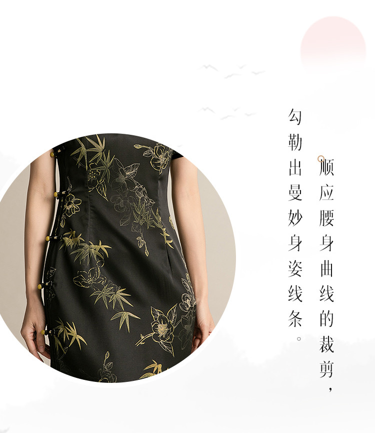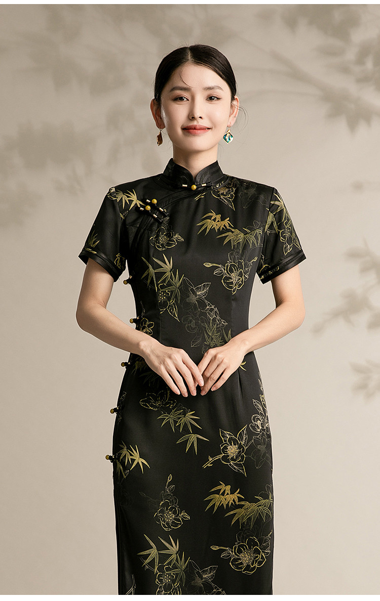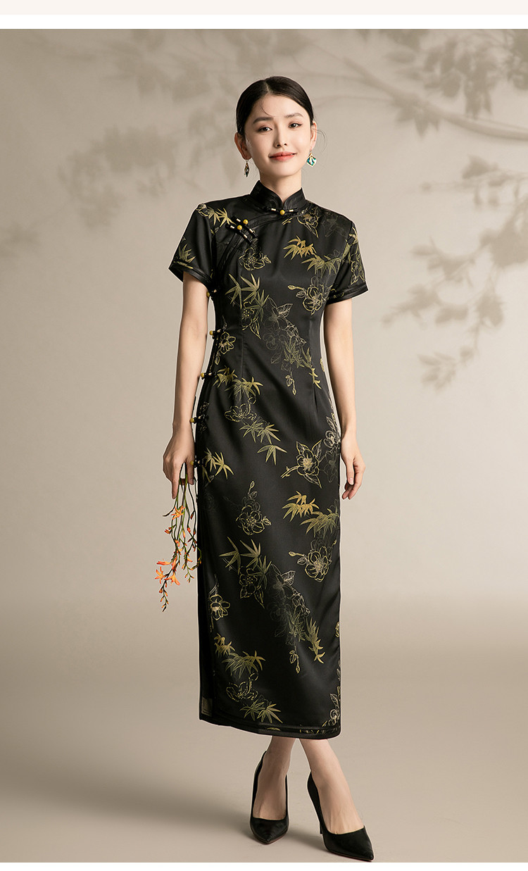 复古国潮风素雅印花旗袍夏季高端气质连衣裙女 042399