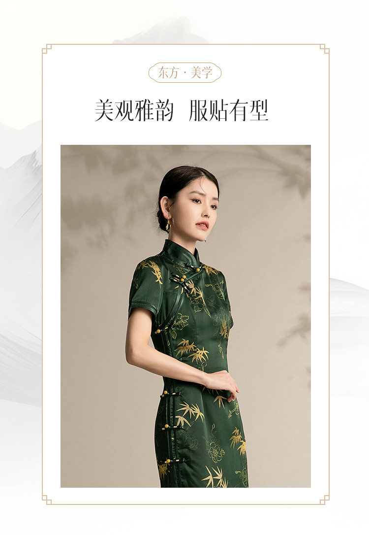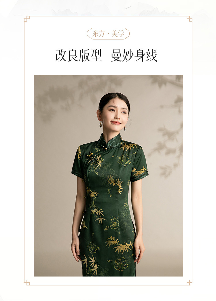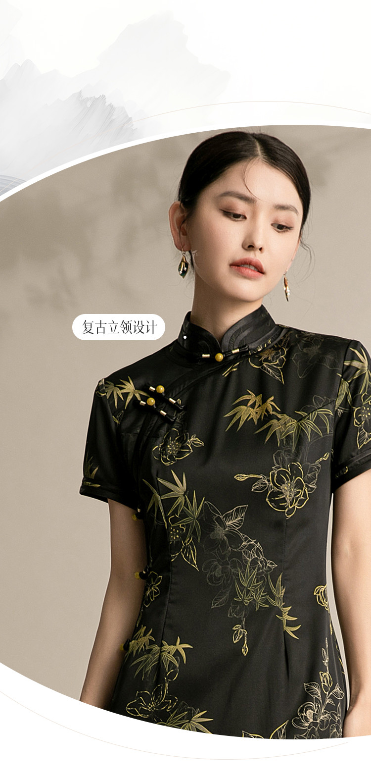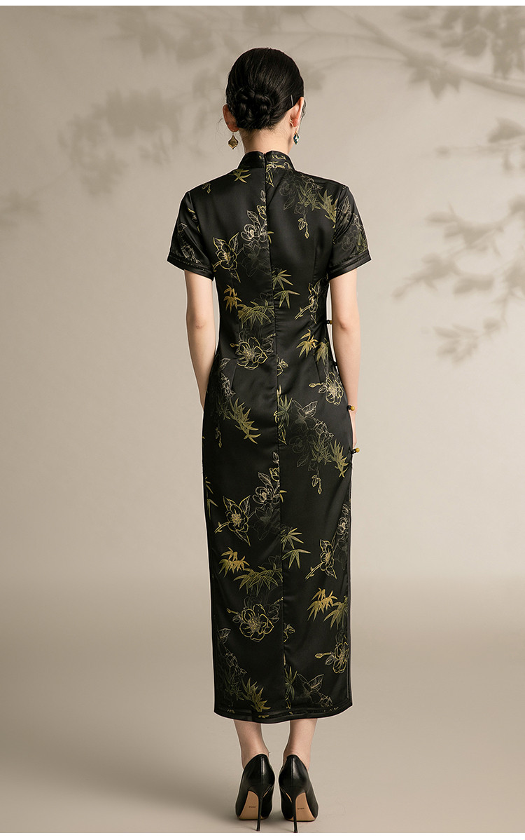 复古国潮风素雅印花旗袍夏季高端气质连衣裙女 042399