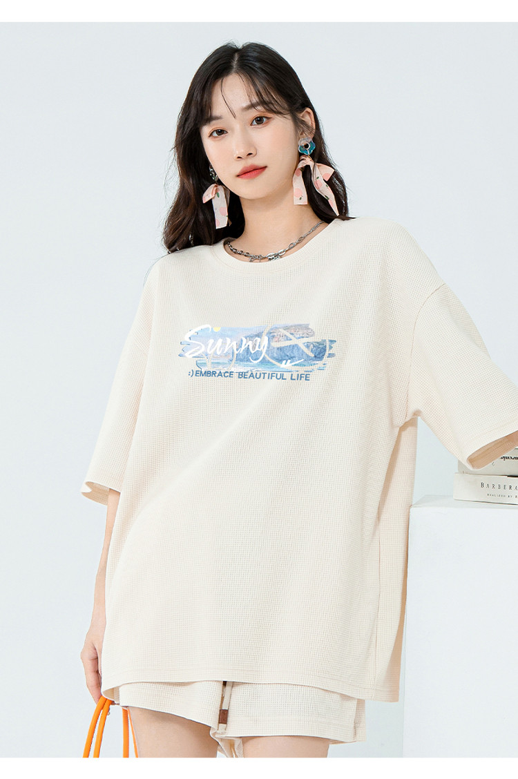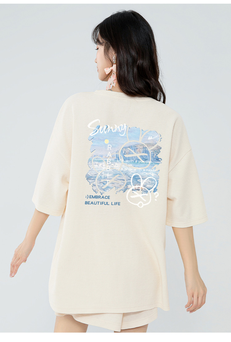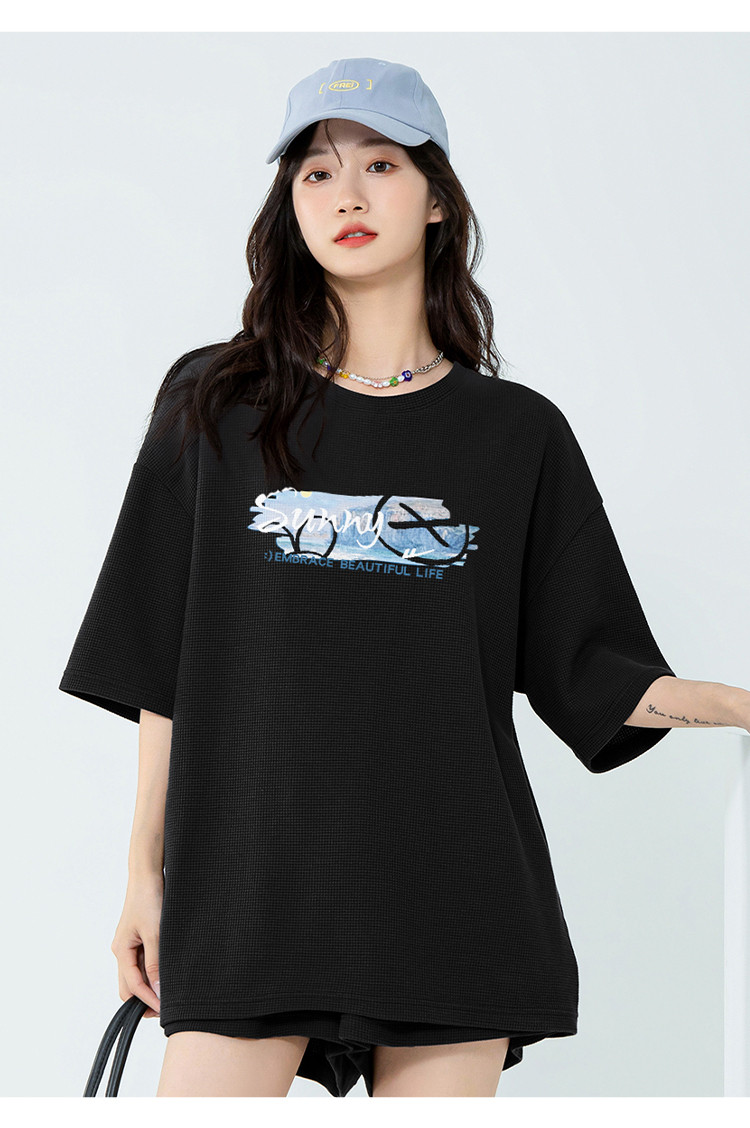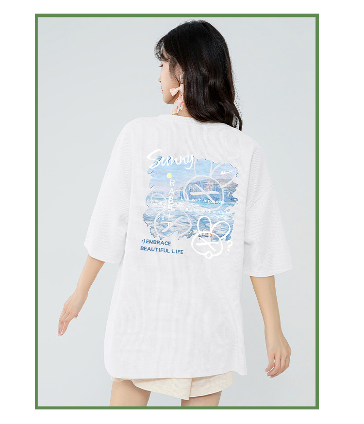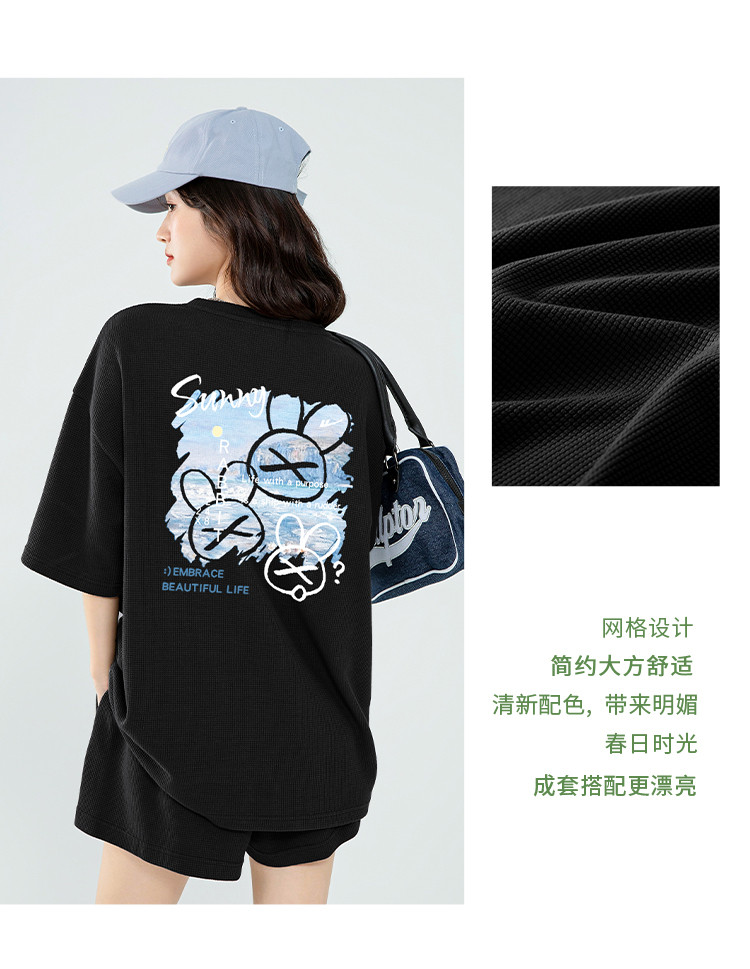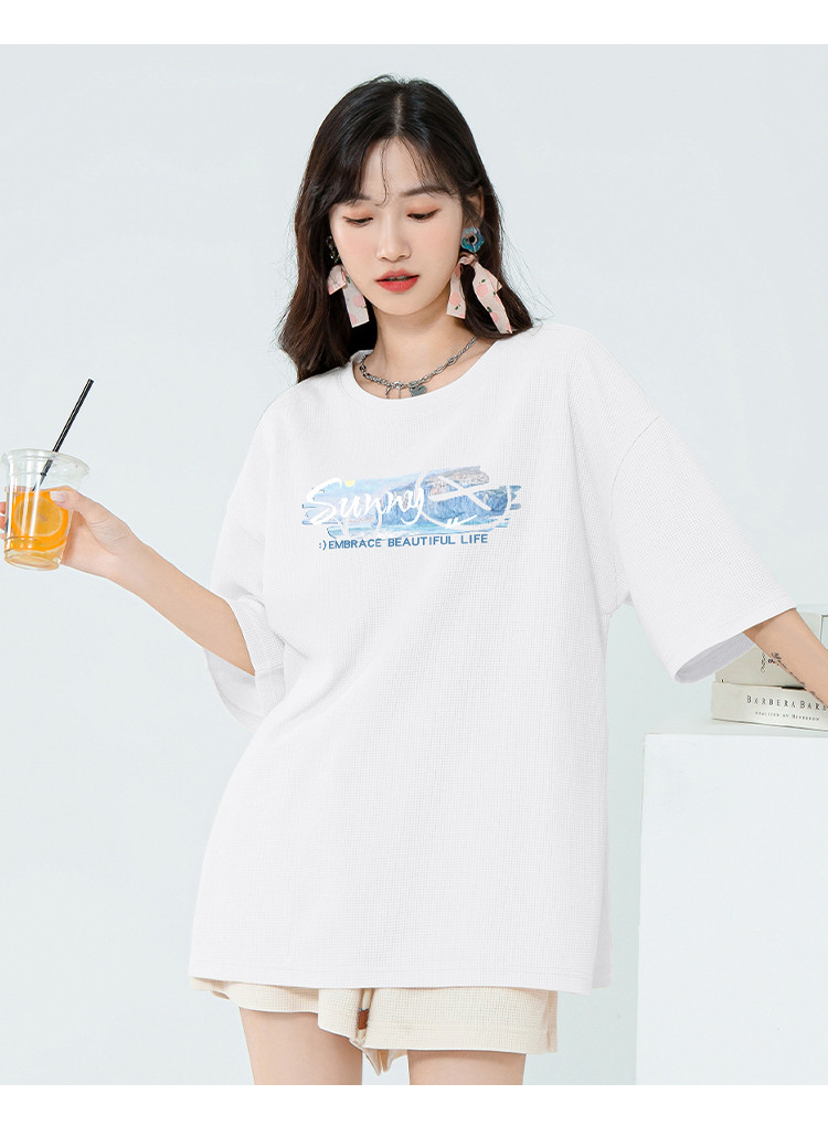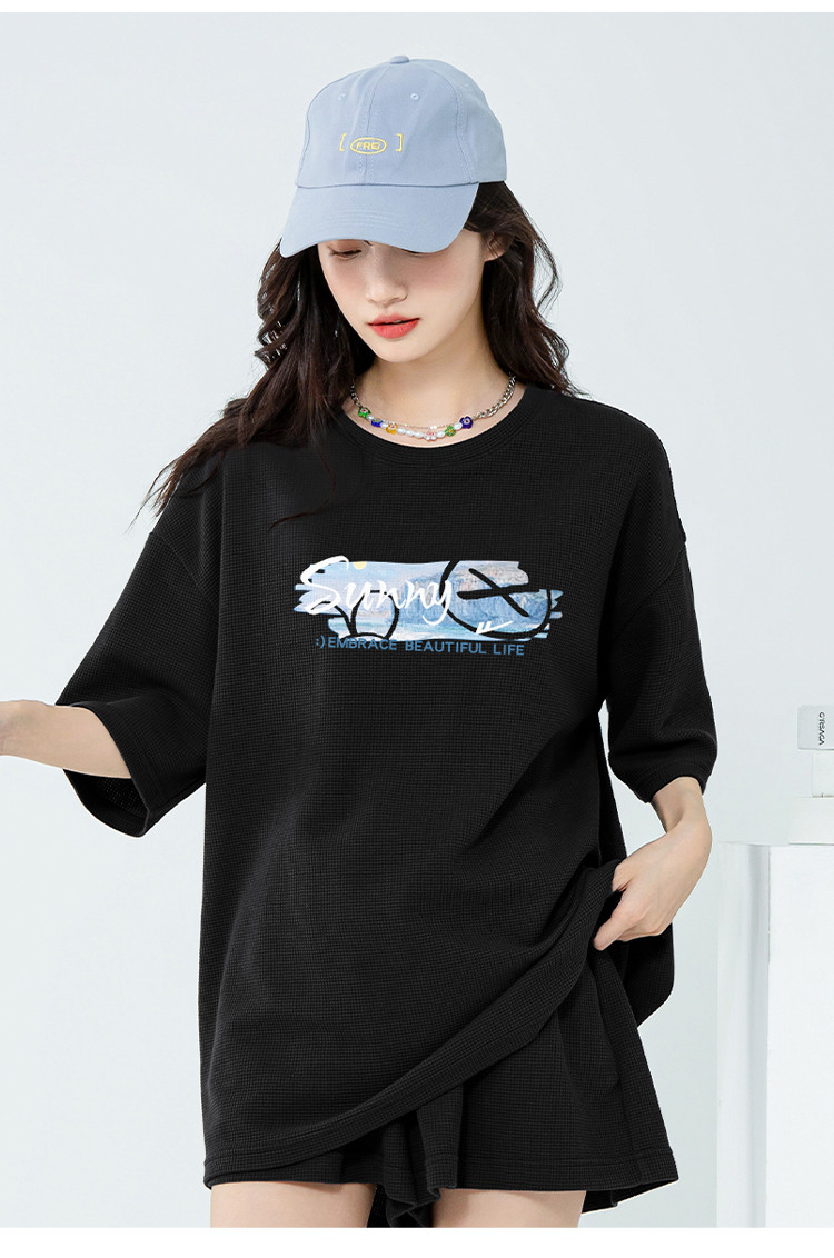 商品名称:【女装华夫格】中长款下衣失踪T恤女夏季宽松休闲运动慵懒风上衣 476179