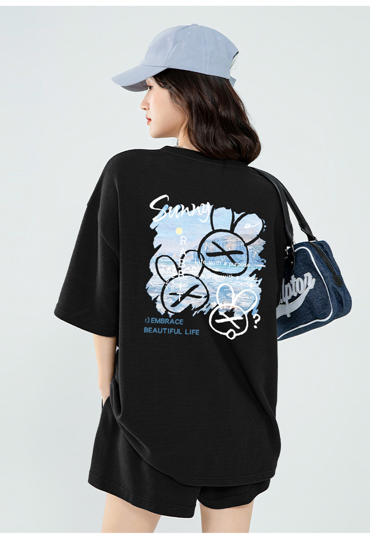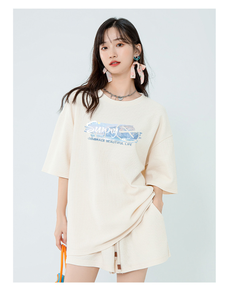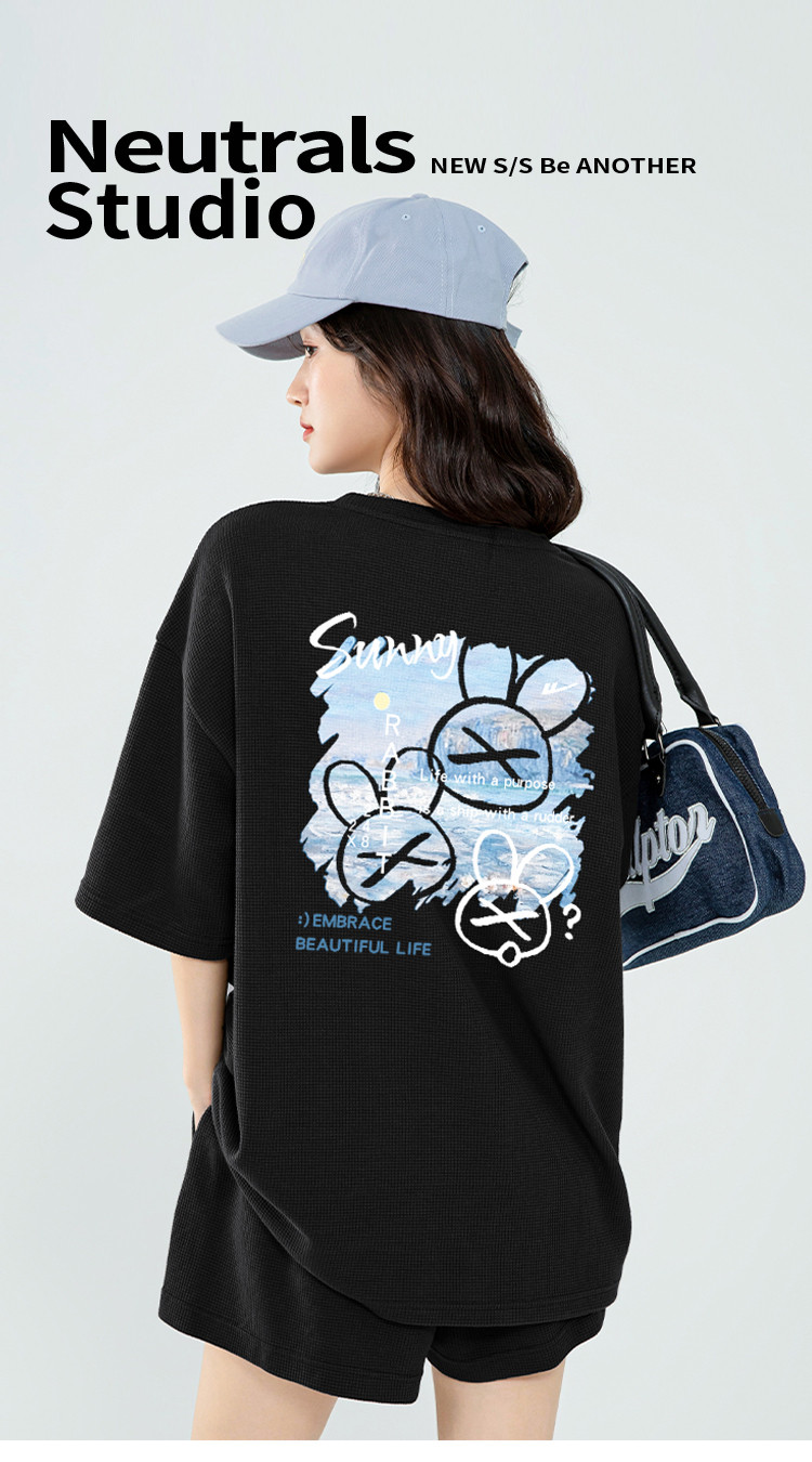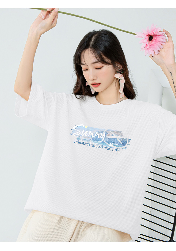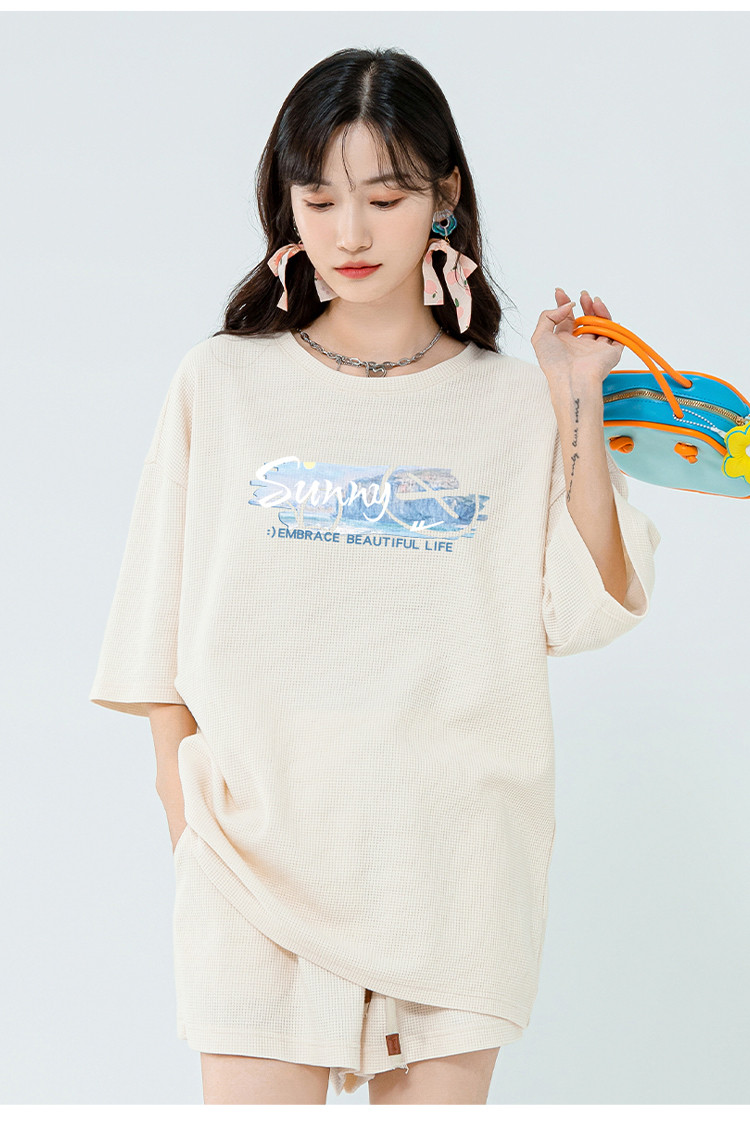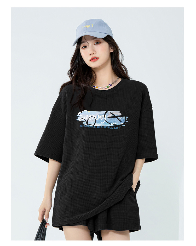 商品名称:【女装华夫格】中长款下衣失踪T恤女夏季宽松休闲运动慵懒风上衣 476179