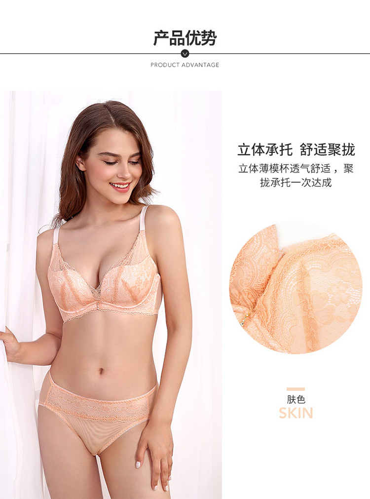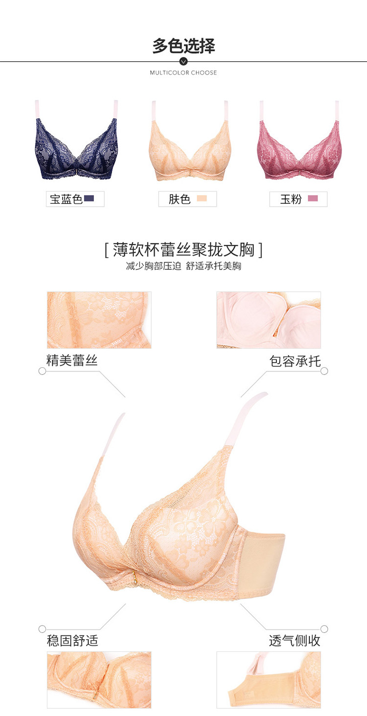 商品名称:【蕾丝薄杯】侧收副乳聚拢上托型胸罩女美背内衣有钢圈聚拢文胸 365451