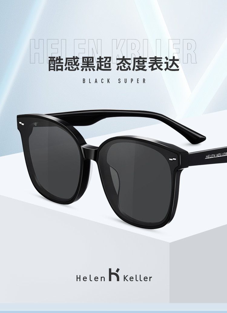 海伦凯勒太阳镜女经典黑超酷飒时髦墨镜防紫外线强光 067675