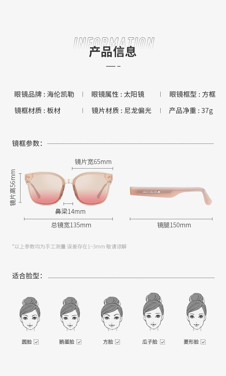 商品名称:海伦凯勒太阳镜女经典黑超酷飒时髦墨镜防紫外线强光 067675