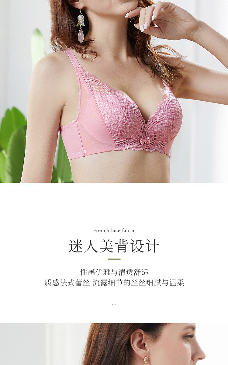 商品名称:【大胸显小】内衣夏季薄款女舒适聚拢无钢圈蕾丝美背内衣文胸收副 587531
