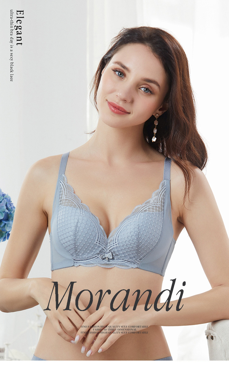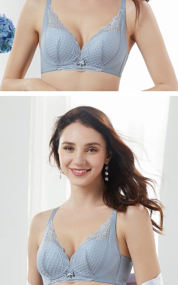 【大胸显小】内衣夏季薄款女舒适聚拢无钢圈蕾丝美背内衣文胸收副 587531