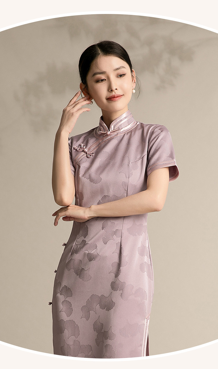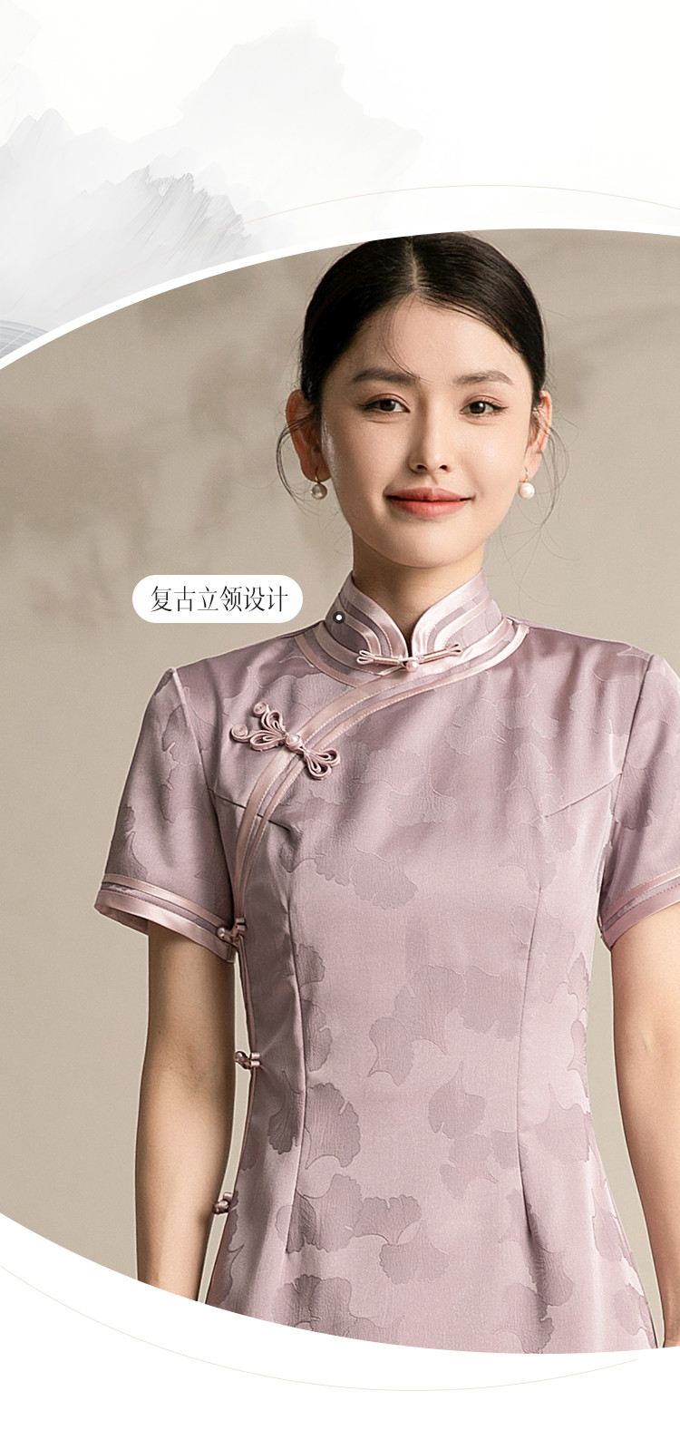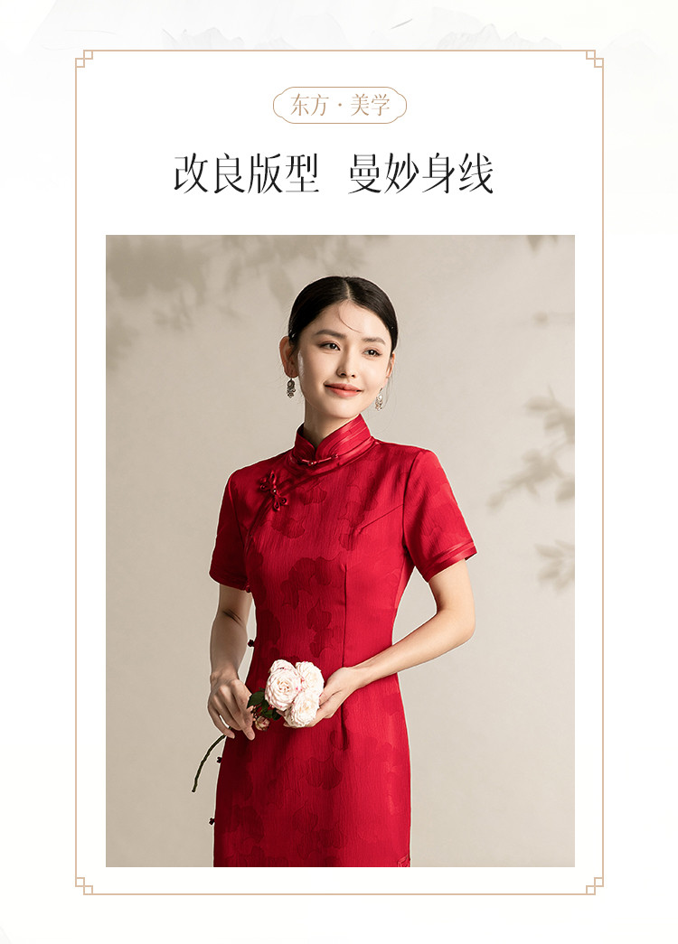 商品名称:新中式改良旗袍复古一片式显瘦中长款红色提花连衣裙 099743