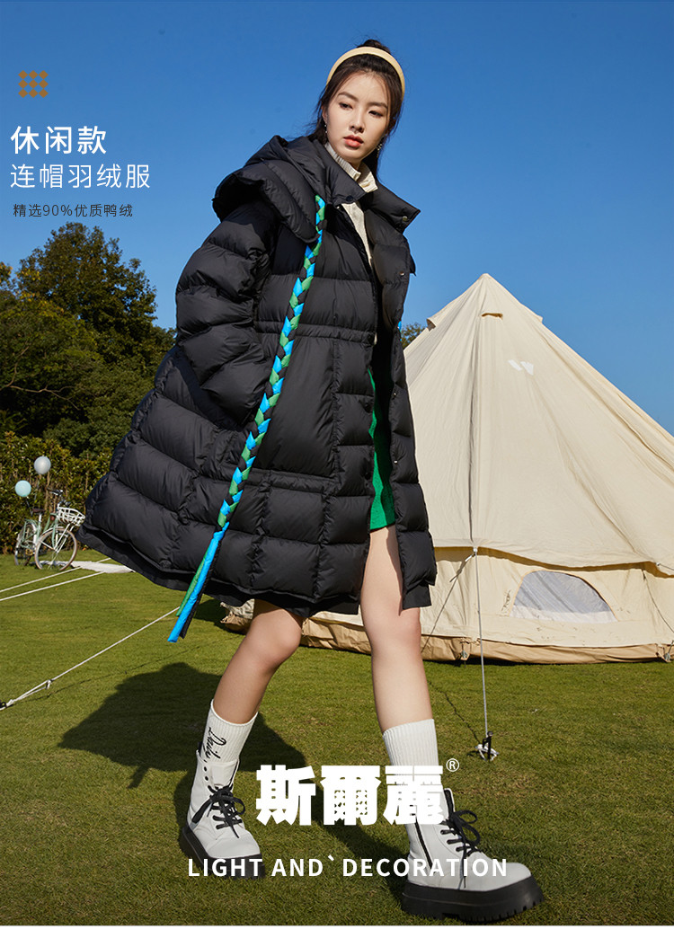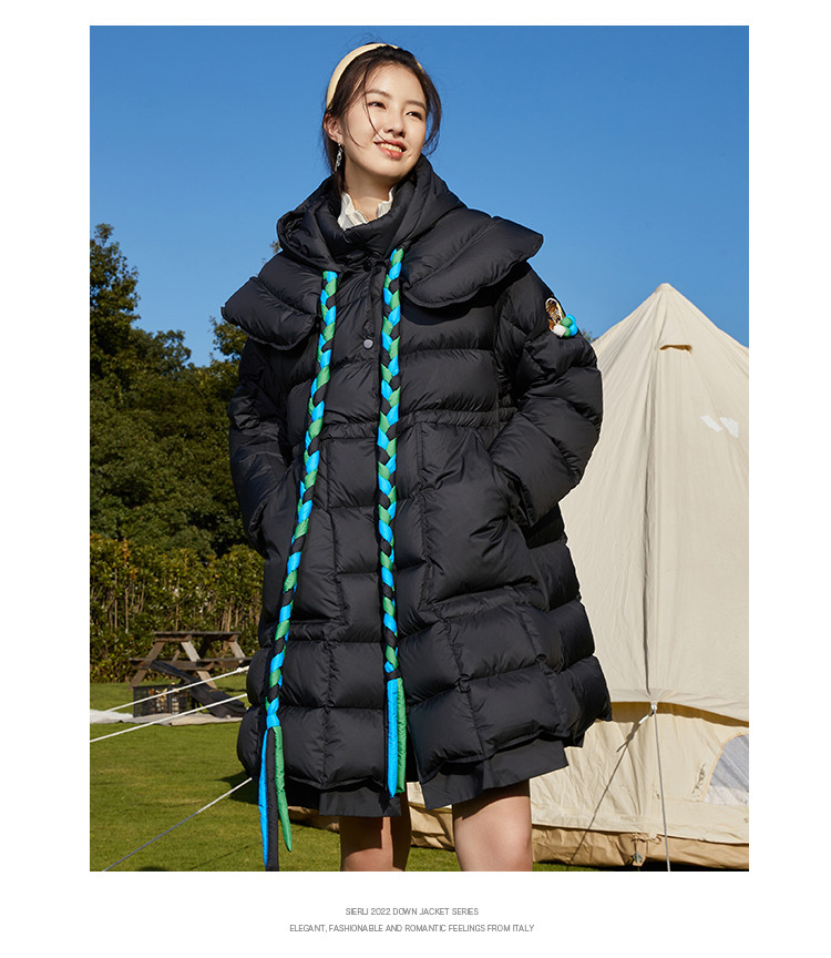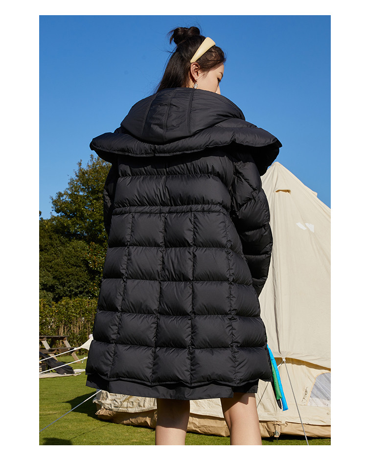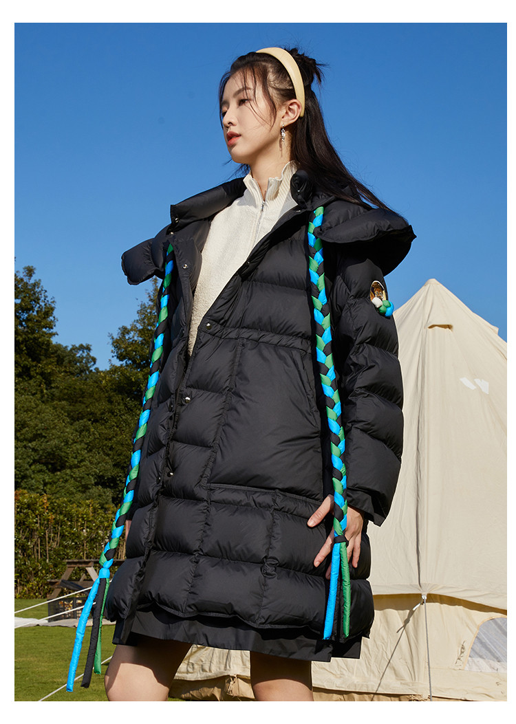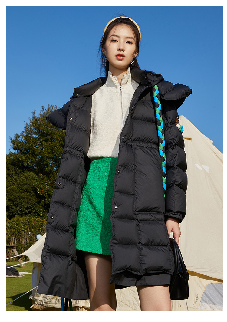 商品名称:活力泡芙女式连帽保暖宽松厚款中长款休闲羽绒服 508447