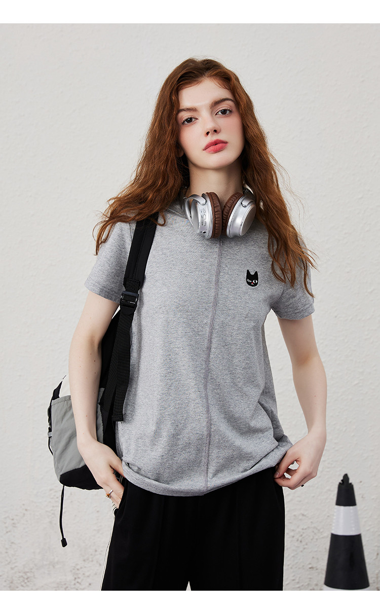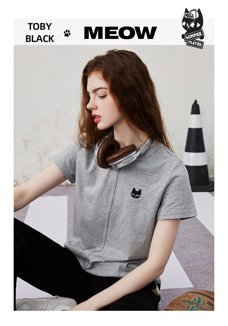 【100%棉】刺绣猫头设计感小众短袖正肩女式T恤夏季 357981