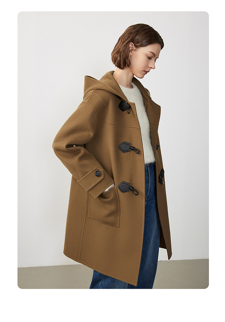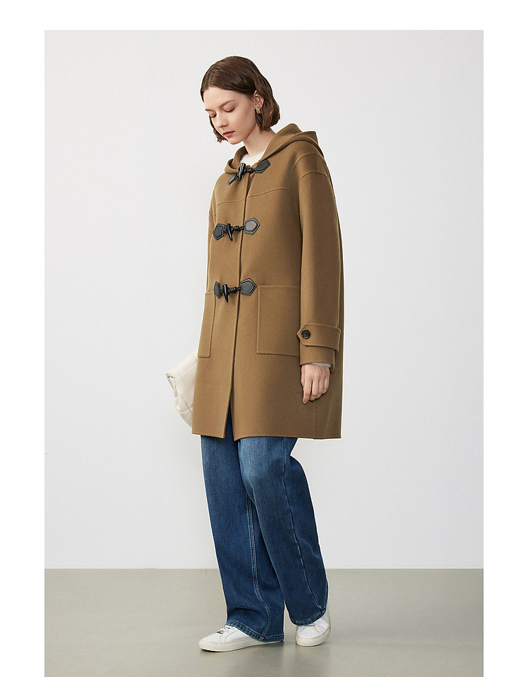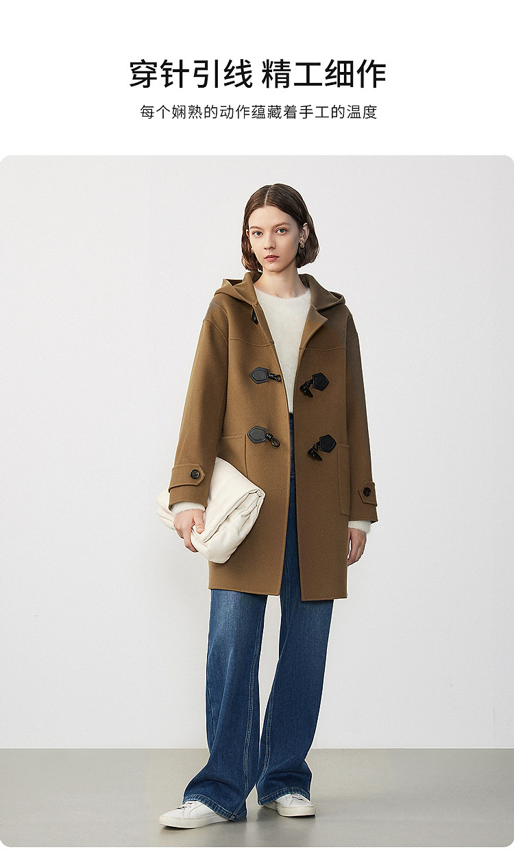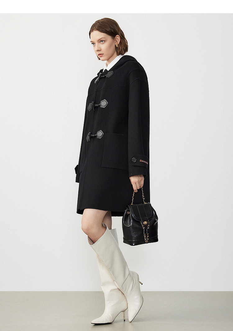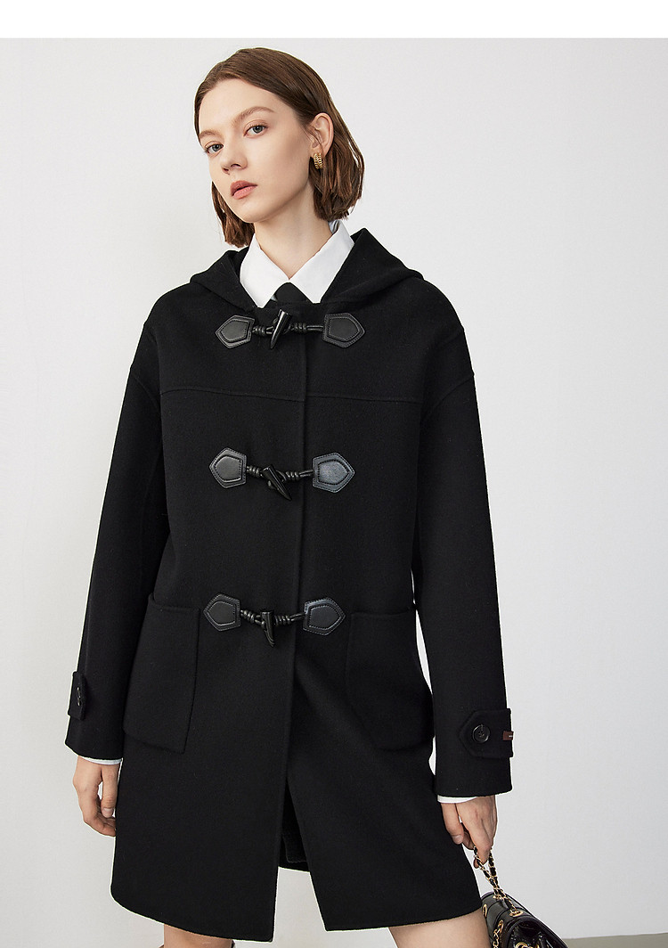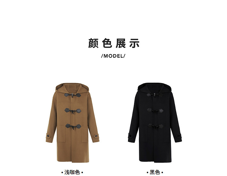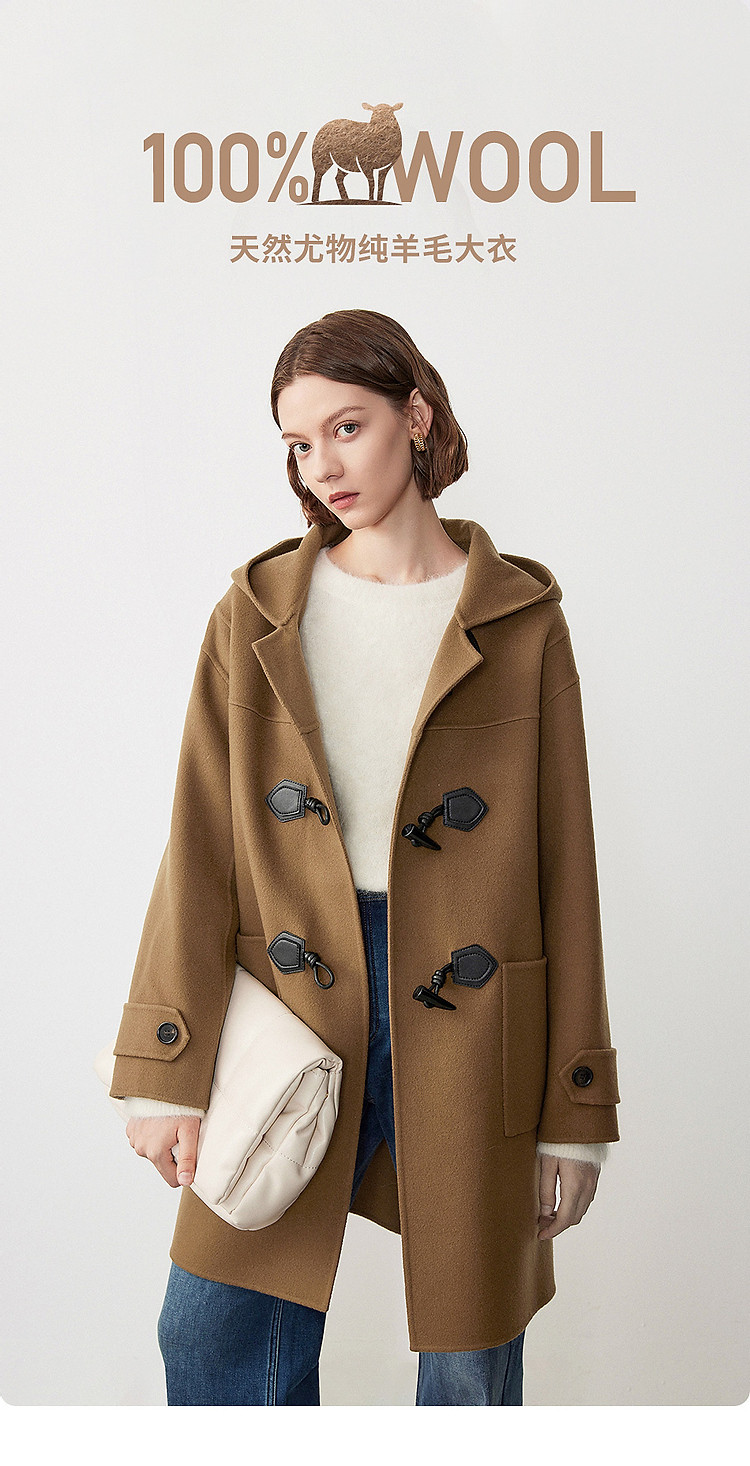 商品名称:朗姿纯羊毛复古中长款牛角扣双面呢大衣冬季通勤毛呢外套 945049