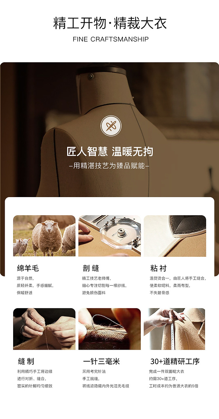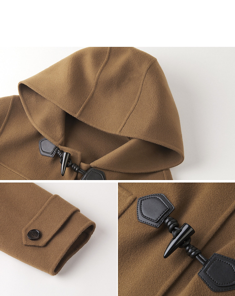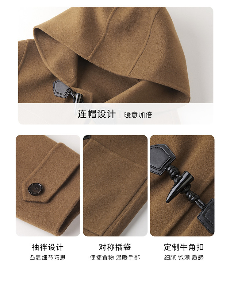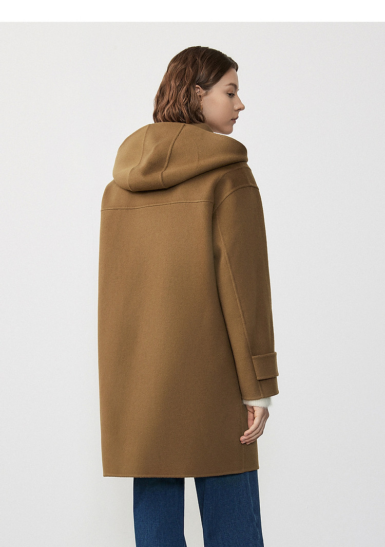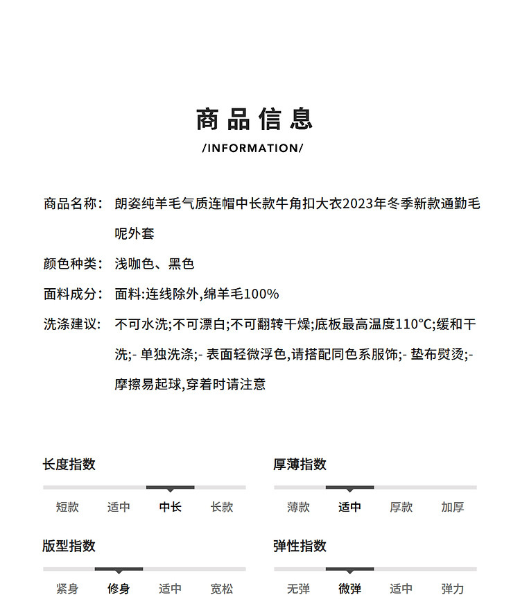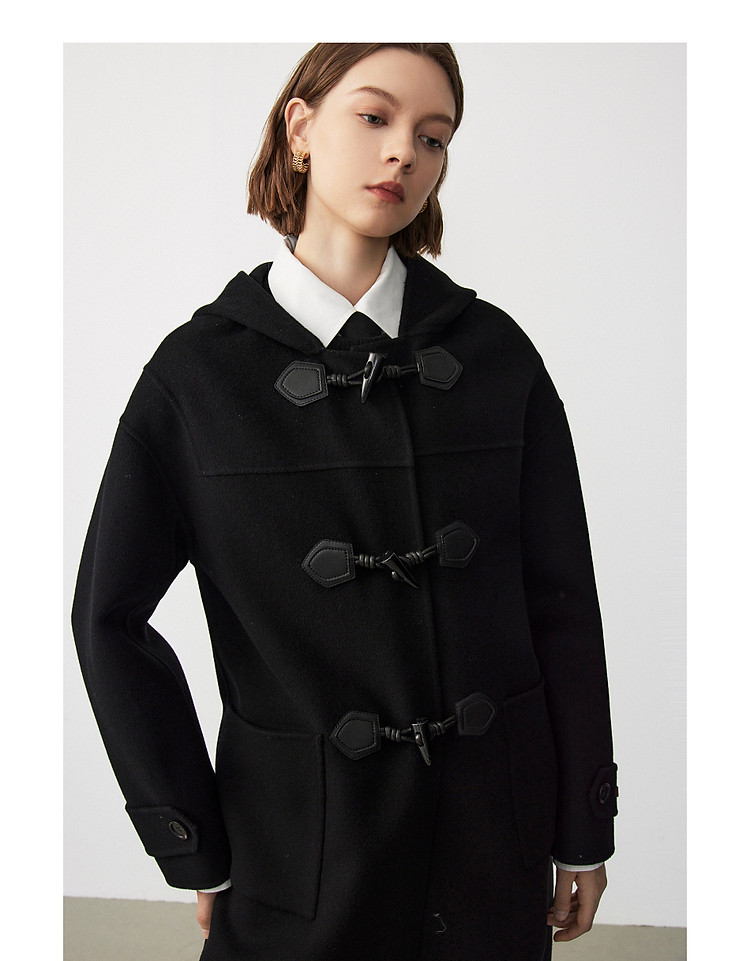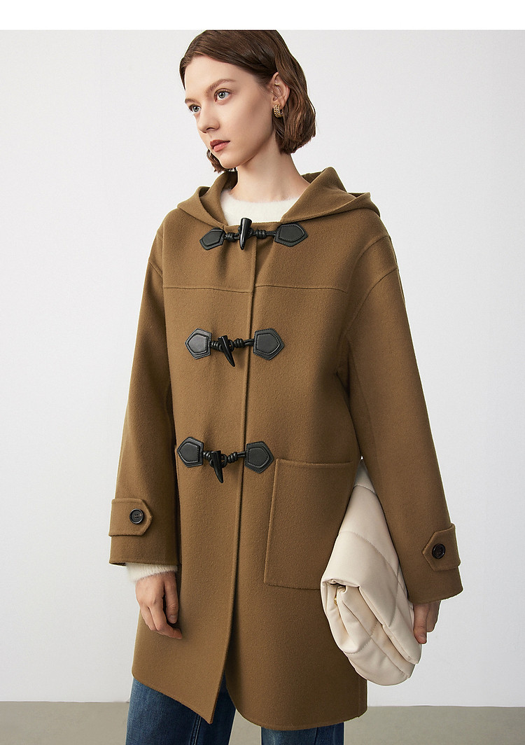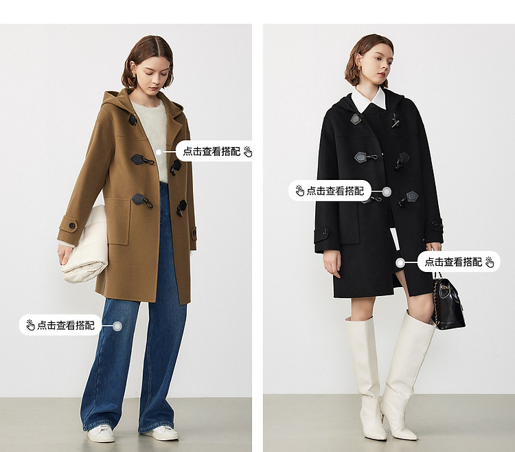 商品名称:朗姿纯羊毛复古中长款牛角扣双面呢大衣冬季通勤毛呢外套 945049