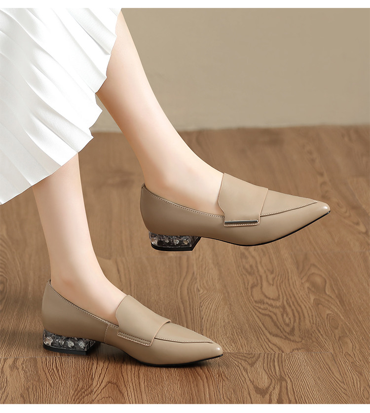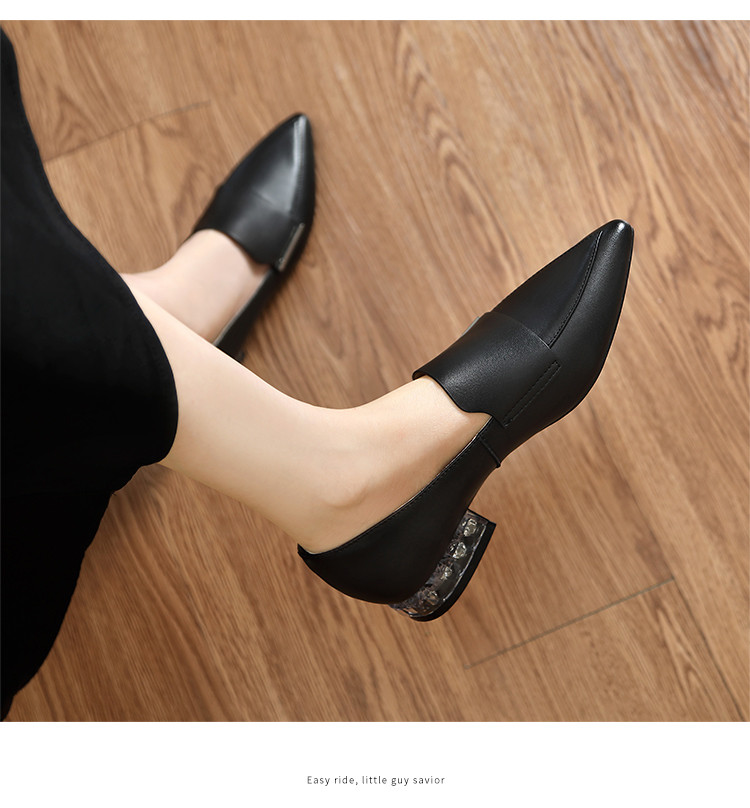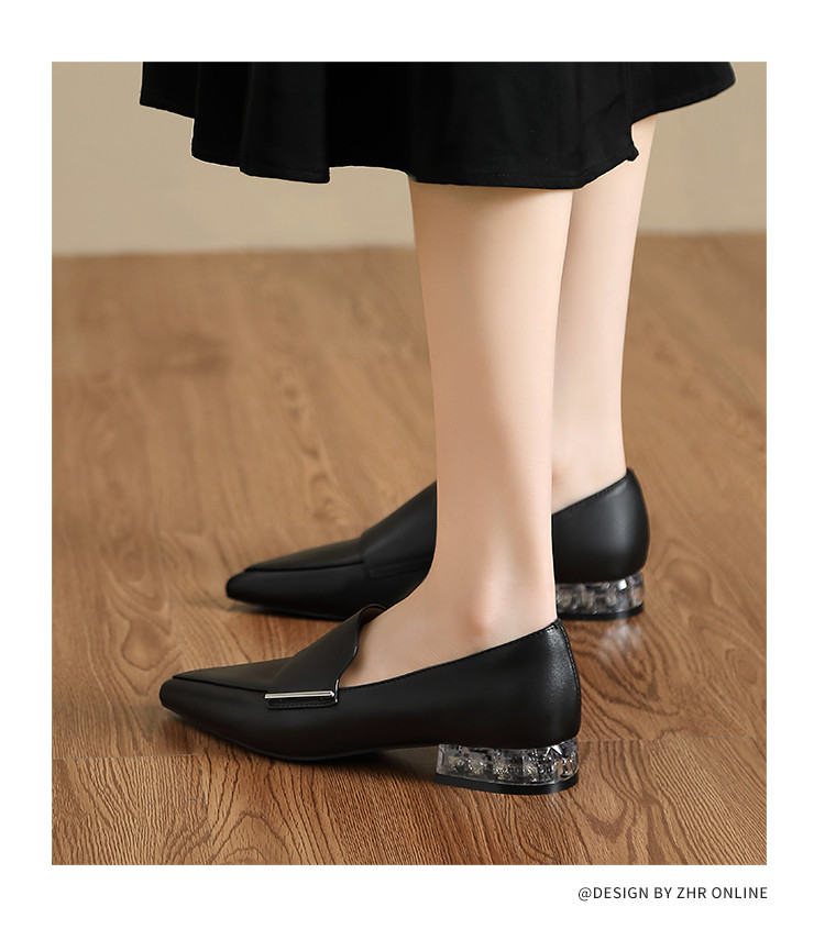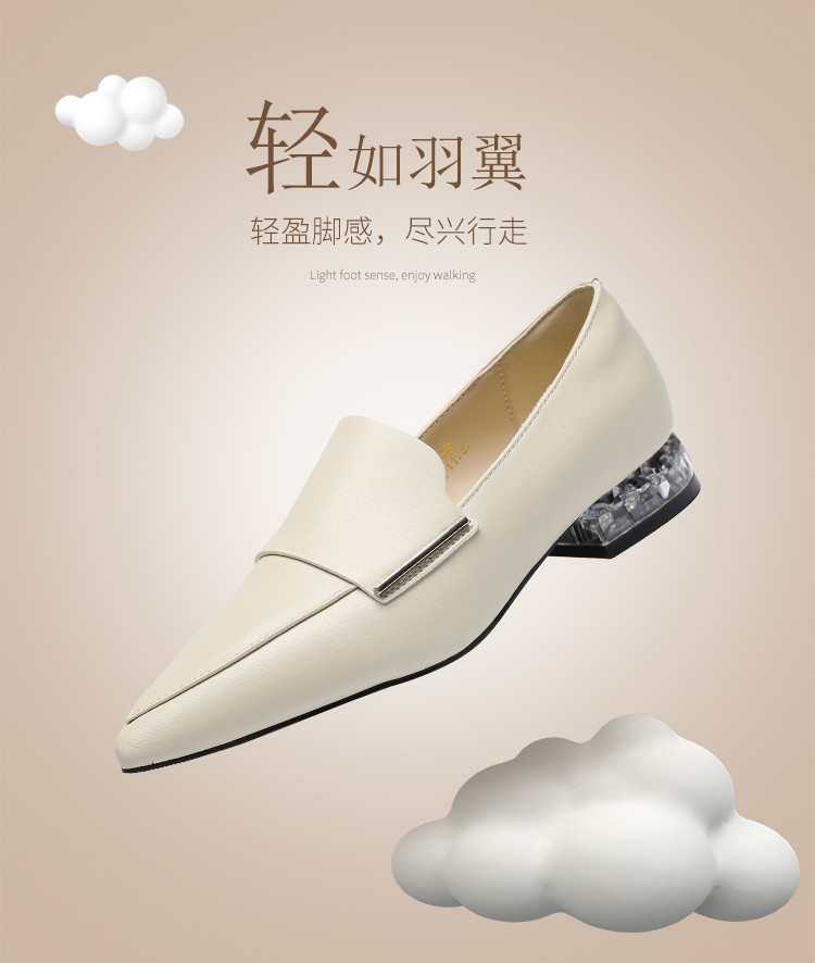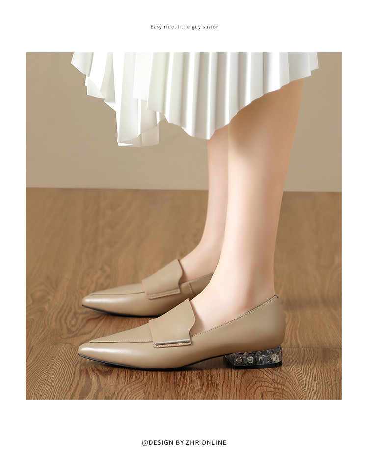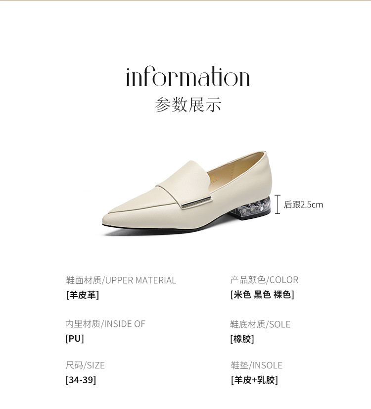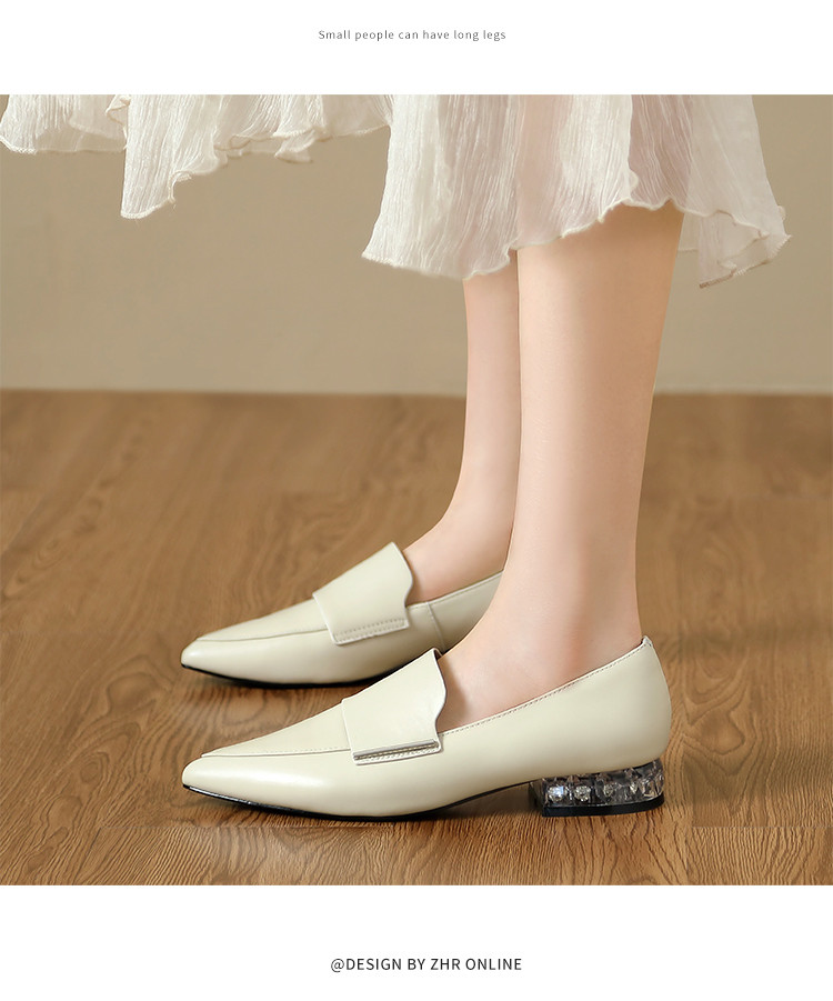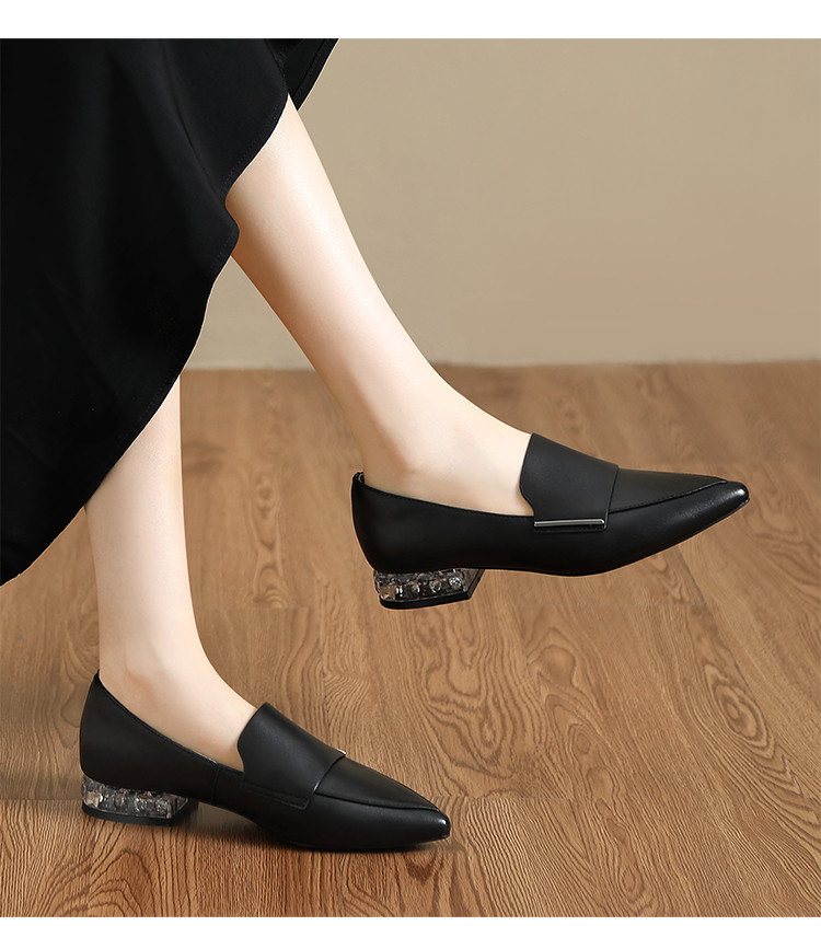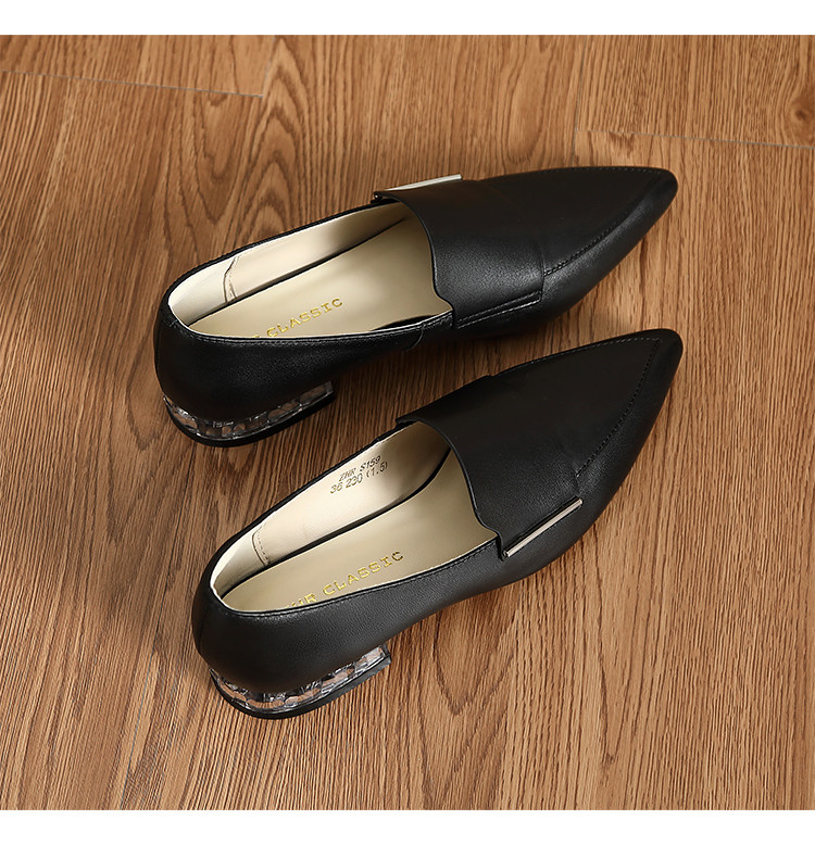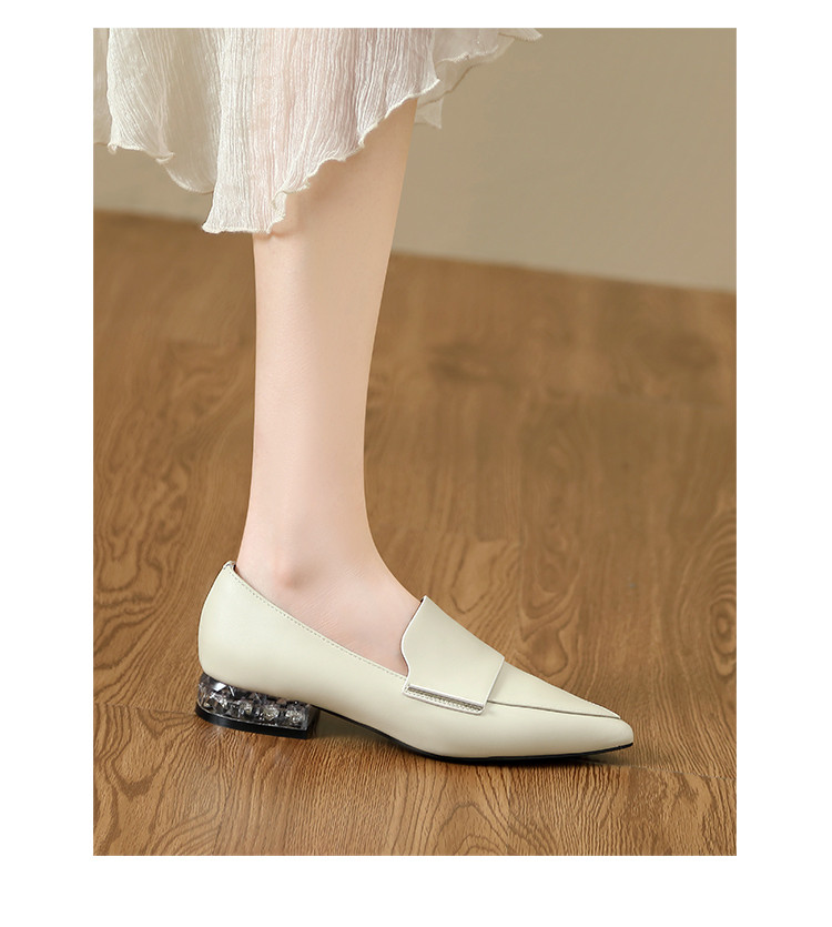 商品名称:【头层羊皮】尖头单鞋女皮鞋水晶跟气质小香风乐福鞋女一脚蹬女鞋 344256